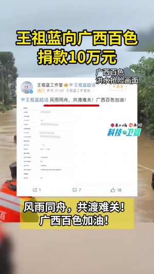 自治区政协委员王祖蓝向广西百色捐款10万元