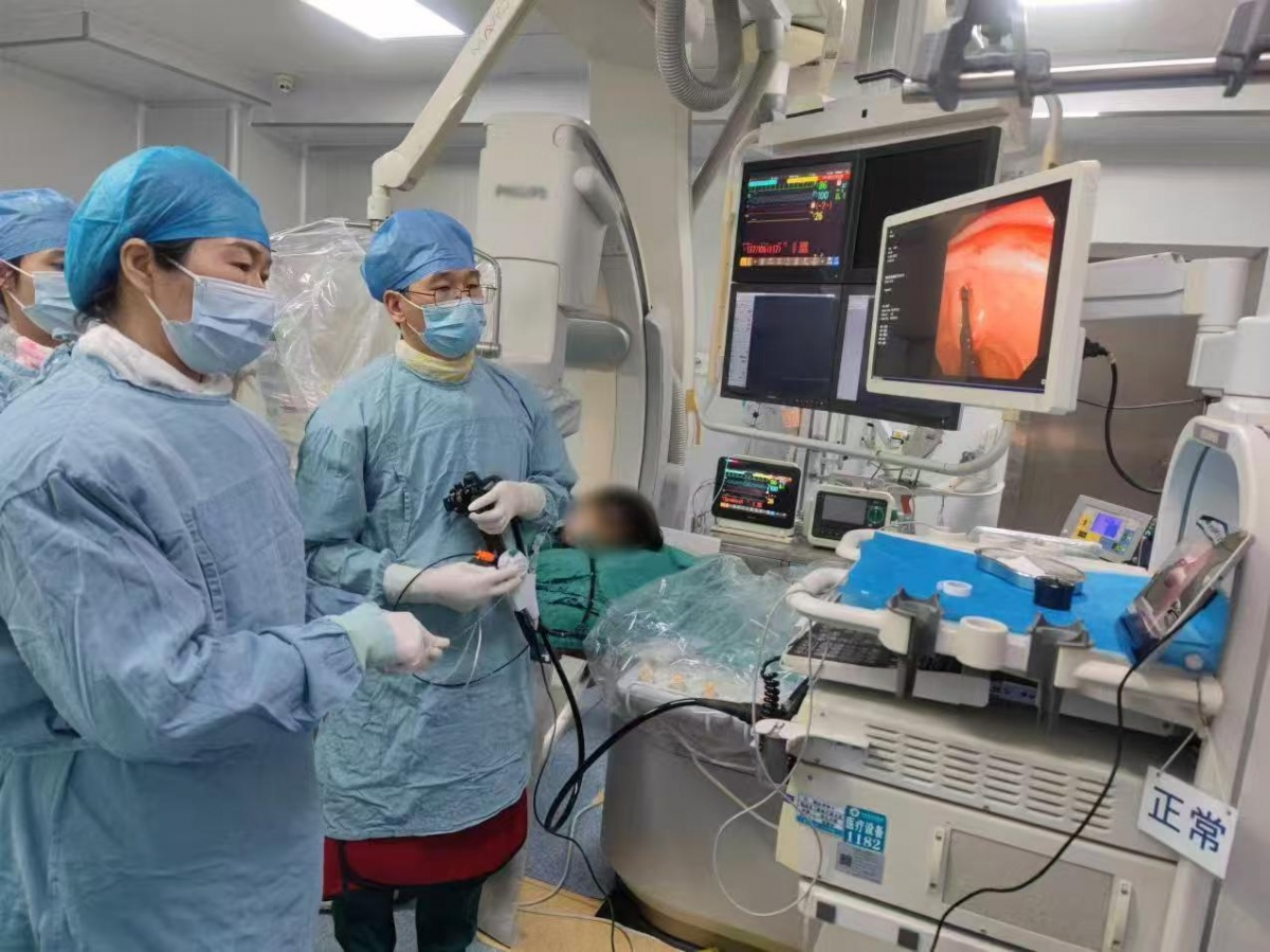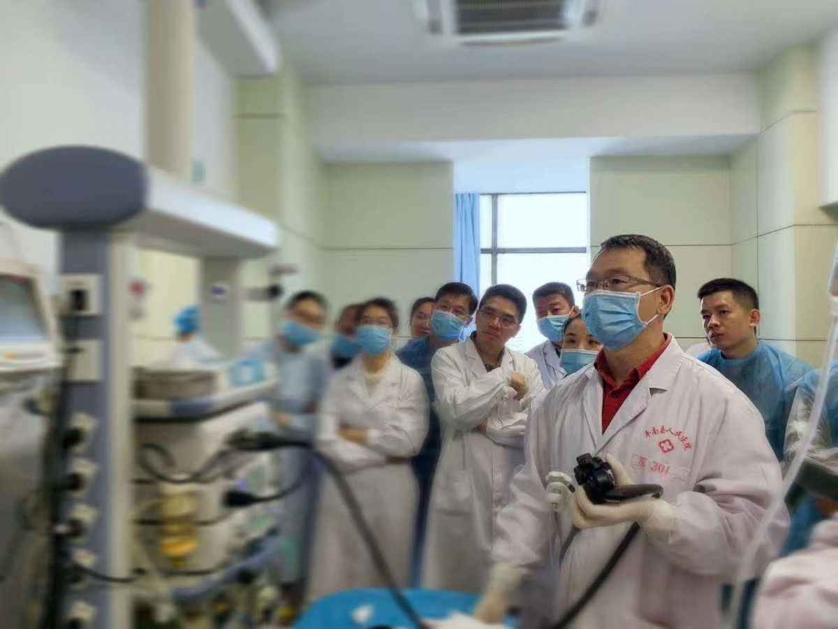 唐雄驰(右一)正在给病人做胰胆管造影(ERCP)和胆管取石治疗。受访者供图 时间回到1997年,唐雄驰怀揣着医学梦回到家乡平南县,在县人民医院神经内科工作。2010年,医院计划组建消化内科,却苦于人才紧缺。关键时刻,唐雄驰主动请缨:“医院和患者需要什么,我就钻研什么。” 神经内科与消化内科分属不同领域,专业壁垒如“隔山跨壑”。为了补短板,唐雄驰开启连轴转模式:每天下班后,泡在办公室“啃”书本,一点一滴筑基础;周末,则跑到上级医院跟班学习,反复观摩学技术。同事劝他:“你这么拼,能吃得消吗?”他却说:“咬咬牙就挺过去了。病人等不起,我们必须闯出一条路。” 学习不止、奋斗不息。唐雄驰不仅实现了从神经内科医生到消化内科专家的转型,更带领科室团队完成了跨越式蝶变。 “以前紧急患者只能在本地做外科手术,创伤大、费用高。”唐雄驰介绍,他们从最初依赖外科手术解决胆管结石、胆道梗阻等问题,到如今能独立开展内镜下胆总管结石清除、恶性胆道梗阻治疗等技术,实现了从开刀到微创的进阶,成功在县域内完成逆行胰胆管造影、内镜下止血、消化道早癌切除等高难度技术的手术。