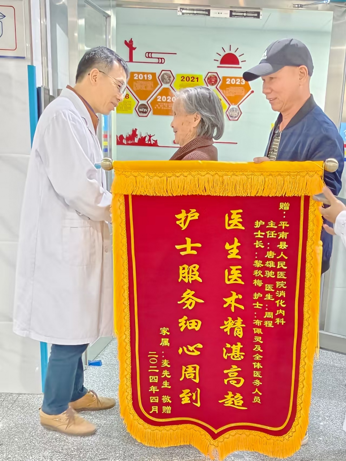 患者康复后,向唐雄驰赠送锦旗表谢意。受访者供图 “消化道癌症发病率居高不下,一旦到了晚期,不仅治疗成本高,更会给家庭、社会带来沉重负担。”唐雄驰介绍,下一步,他们将持续推动开展消化道癌症早筛早诊工作,并争取向乡镇地区覆盖。 “治病不如防病!我们基层医生的使命,就是为乡亲们在家门口建立起健康防线,早筛早诊早干预,把风险消灭在无声处。”他说。 8月15日一早,唐雄驰照常出现在诊室,面对前来求医的患者,他细心问诊、轻声安慰,手下的键盘轻轻敲响…… |