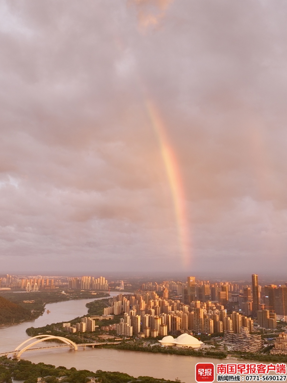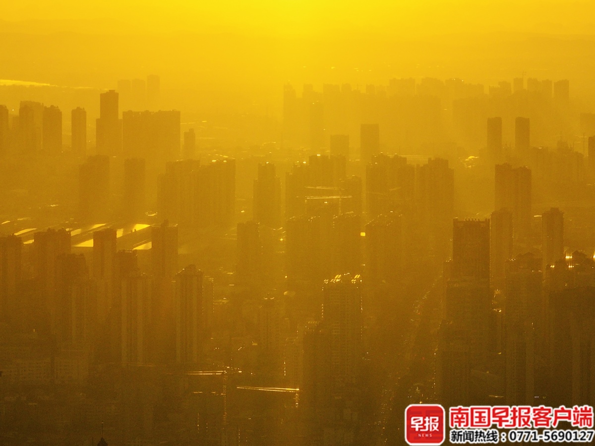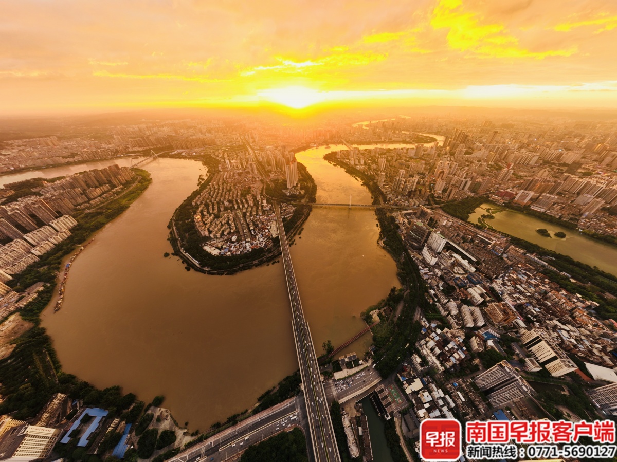 10月5日傍晚,台风“麦德姆”来临前,南宁市出现壮观的火烧云,半边天空变得一片金黄,夕阳余晖染红了邕江。 南宁市葫芦鼎大桥一带,有市民在江边停下脚步,记录这壮美一刻。 美图来啦 ↓↓↓ 晚霞晕染了整片天空,邕江变得一片金黄。 金黄的江水从白沙大桥下流过。 金黄的邕江水从亭子码头旁流过。 城市的建筑沉浸在一片金光中。 晚6时许,南宁市西边的天空变得金黄一片。 南宁市东边的天空出现巨大的彩虹。 市民在邕江边看火烧云。 晚6时50分,夕阳余晖在地平线逐渐消失。 |