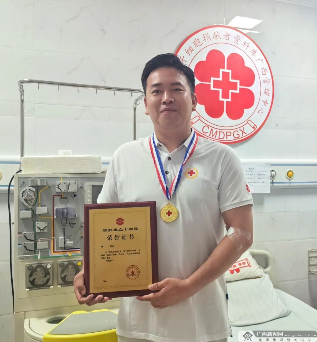 新闻眼10月中旬,来自贺州市、柳州市、玉林市的三位捐献者同日挽起衣袖,同步完成采集,将三份特殊的“生命礼物”传递给远方患者,为他们重启人生。745、746、747,递增的数字背后,诠释了八桂儿女的大爱担当。 一腔热血赴公益 两度捐献燃希望 造血干细胞采集室内,随着承载着希望的“生命火种”逐渐汇集到一起,贺州市的黄医生完成了他人生中第二次造血干细胞采集,成为中国造血干细胞捐献者资料库(中华骨髓库)第20769例、贺州市第18例、广西第745例非血缘造血干细胞捐献者。 完成二次捐献的黄医生。贺州市红十字会供图 谈及二次捐献造血干细胞家人是否支持时,他笑了笑说,“我相信他们会支持我的决定。”2024年,黄医生首次与一名血液病患者配型并成功捐献。今年9月,当得知患者病情再度复发后,黄医生没有丝毫犹豫和退缩,表明同意捐献。 “一年前做过的正确而意义重大的事情,现在再做一次,这没有什么。”黄医生的言语,尽是豁达。“能帮助一个病人,挽救他的生命,我觉得很高兴。我也很愿意捐献我的造血干细胞,希望他早日康复,能够努力的工作生活。” 采集过程中,黄医生始终面带笑容。四个多小时后,含着“生命种子”的造血干细胞混悬液由运送人员紧急送往患者所在医院。采集结束后,黄医生收到了来自患者的感谢信。“来自陌生人的爱真的很感动……想到世界上有人愿意为我如此付出,就会告诉自己要好好地坚强活下去。”看着信中的内容,黄医生更加相信自己的选择没有错。 特别的生日礼物 刚过完生日的小覃完成了一次意义非凡的善举——他成功捐献了造血干细胞,成为中华骨髓库第21212例、广西第746例、柳州市第104例非血缘造血干细胞捐献者。 完成捐献的小覃。柳州市红十字会供图 刚满18岁那年,小覃走进献血车,用一次无偿献血为自己的成年礼留下了特殊的印记。也正是在那一年,他从志愿者口中了解到,捐献造血干细胞能够为血液病患者点燃重生的希望。深受触动的小覃,毫不犹豫地与同学们一起登记申请加入中华骨髓库。 令人惊喜的是,仅仅入库一年的小覃就接到了红十字会的电话,告知他与一位血液病患者配型成功。面对这个能够挽救生命的机会,他没有丝毫犹豫,坚定地选择了捐献。更巧的是,入院准备捐献的前一天,正是他的生日。小覃感慨地说,这份“生命的种子”,既是为患者送上的希望,也是给自己最有意义的生日礼物。在小覃的姐姐眼中,弟弟一直是个“做得比说得多”的人。对于小覃的决定,父母也给予了充分的理解与支持,尊重他为生命接力的勇敢选择。 捐献造血干细胞 叩响重生之门 来自玉林的潘先生成功捐献了造血干细胞,成为中华骨髓库第21219例、广西第747例、玉林市第23例非血缘造血干细胞捐献者。用自己力所能及的方式传递爱心与善意,是潘先生一直以来的初心和使命。 潘先生成功捐献。玉林市红十字会供图 早在2012年,潘先生在做义工的时候便了解到捐献造血干细胞可以挽救濒临绝境的血液病患者的生命。怀着拯救生命的初心,在之后的一次无偿献血活动中,潘先生果断登记申请加入中华骨髓库,成为了一名光荣的造血干细胞志愿捐献者。 2025年6月,正在工作的潘先生接到玉林市红十字会的电话,告知他的血样与一名血液病患者成功配型,在征求其捐献意愿时,他毫不犹豫的答应了下来:“因为之前有过这方面的经历,而且这么小的概率都能配型成功,那说明这就是一种缘分。一想到能拯救他人的生命,能给患者及其家属带来重生的希望,我感到很高兴也很荣幸。”潘先生说。起初他的家人并不理解,但经过潘先生的努力,家人最终支持他捐献造血干细胞的决定。 采集当天,中国造血干细胞捐献者资料库广西管理中心副主任冯晓春、玉林市红十字会专职副会长罗海英到采集医院看望并慰问潘先生,对他捐“髓”救人、无私奉献的精神给予了高度赞扬和肯定。“其实我觉得没做什么特别的事,就是圆了当初入库时的心愿,我能做的就是尽自己所能去帮助别人,能给别人带去生的希望,我感到很有意义也很开心,希望那名患者可以尽快恢复身体健康,早日回归正常生活。”他表示,希望通过这次捐“髓”救人的善举,让社会上更多有爱心的人加入到造血干细胞捐献的队伍中来,为更多血液病患者和家庭带去重生的希望。 中国造血干细胞捐献者资料库广西管理中心副主任冯晓春(左二)、玉林市红十字会专职副会长罗海英(左一)到采集医院慰问潘先生。 截至目前,全区已有超9.3万名志愿捐献者加入中华骨髓库,成功实现造血干细胞捐献749例。这一串数字,是无数平凡人用勇气书写的生命诗篇,更是八桂大地生生不息的人性光辉。 |