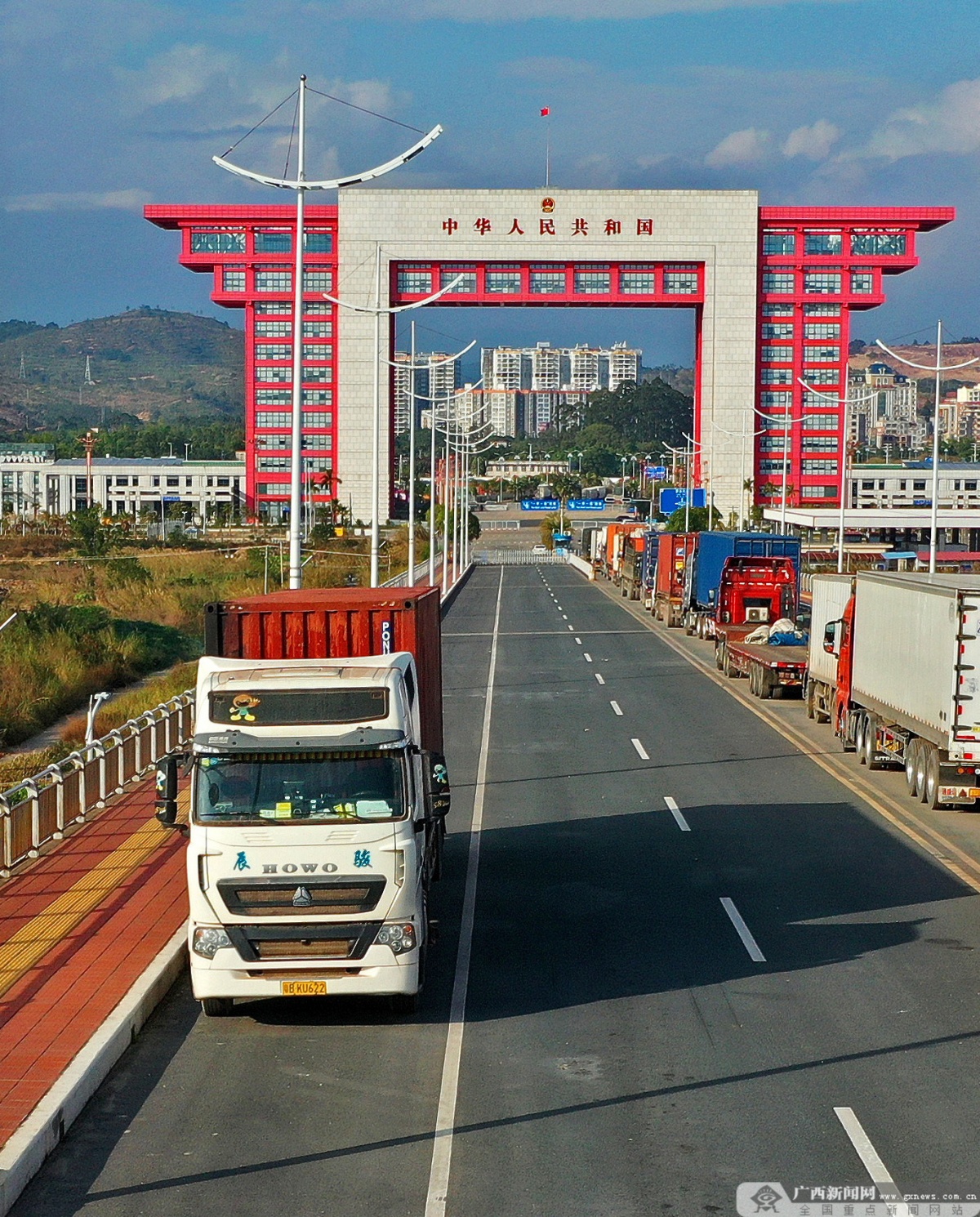 货车有序进出东兴口岸二桥国门楼。周军 摄 在跨境通关环节,便利化改革也在持续深化。友谊关口岸作为通往东盟国家最便捷的陆路通道之一,近年来通关量逐年攀升。“对于生鲜农作物等对时效要求高的货物来说,通关速度非常关键。”友谊关海关物流监控科工作人员陆春蓉说,该口岸创新探索全信息智能通关及进出口货物“提前申报、卡口验放”新模式,可实现“15秒过卡,一站式通关”。 当前,广西正全力推进中越友谊关—友谊货运通道智慧口岸项目建设,持续提升口岸通关效率。“项目建成后,借助自动化、信息化和智能化等技术手段,口岸通关可实现24小时不间断作业。”友谊关海关副关长石磊介绍,届时,中越跨境贸易将迎来通关“不打烊”“零等待”的新阶段。 除此之外,浦寨—新清智慧口岸、东兴—芒街智慧口岸等项目也在有序推进,全区智慧口岸指挥调度平台已完成主体功能建设,建成后将实现数据汇聚、监测预警和智能调度。 随着一系列聚焦贸易便利化改革的创新举措加速落地,西部陆海新通道运行效率和服务水平不断提升,应用场景不断拓展,凝聚力和竞争力持续增强,构建起高效便捷的综合物流大通道,助力区域经济高质量发展。 产业集聚,经济走廊加速成型 目前,随着西部陆海新通道的加快建设,广西凭借陆海交汇门户的独特优势,面向东盟释放产业“磁吸力”,吸引越来越多企业落户发展。 “我们选择在钦州设厂,就是看中这里的枢纽优势。”马来西亚闵和国际有限公司内部审核部总经理潘南达说,钦州港位于西部陆海新通道的主通道出海口,在此设厂将进一步节约物流成本,开拓中国西南和东盟市场将更有底气。 2024年6月,该公司在中马钦州产业园区投资设厂,利用钦州港的地理优势,积极打造棕榈油、棕榈粕进口贸易及储运转口的重要基地。 潘南达的选择,并非个例。近年来,越来越多的企业将目光投向广西的物流枢纽,依托物流优势布局产业,形成“枢纽聚产业、产业促枢纽”的良性互动格局。
