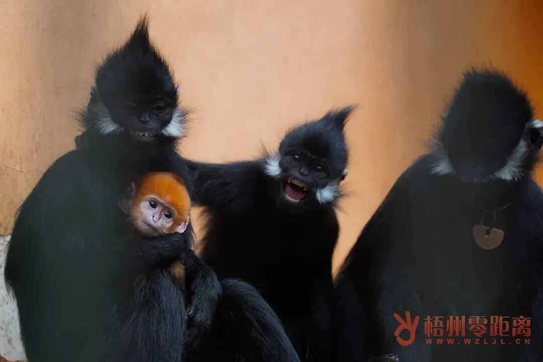 在梧州市黑叶猴保护研究中心,黑叶猴露出调皮的笑容。杨扬 摄