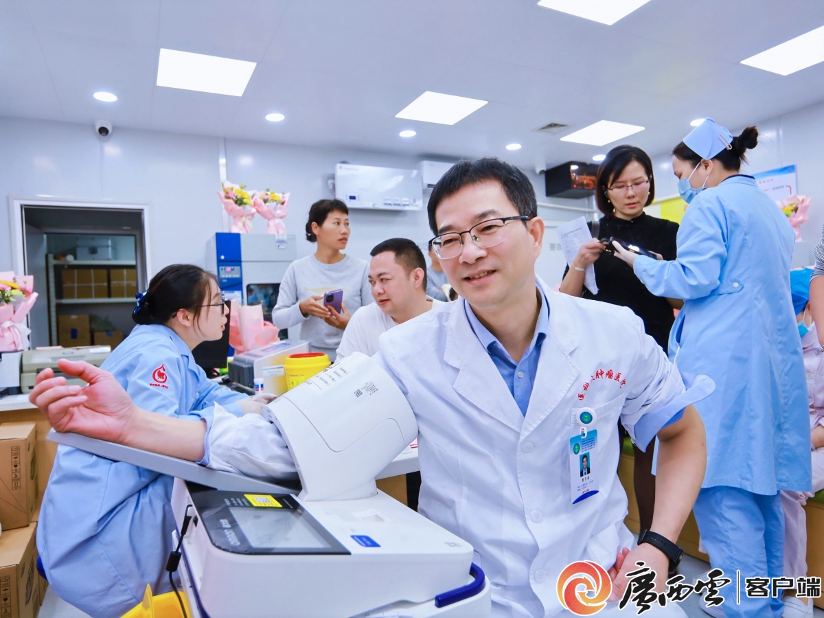 11月17日,南宁市第五个“站院共建”捐血屋——南宁中心血站爱心捐血屋(肿瘤医院点)在广西医科大学附属肿瘤医院五象院区内正式启用。 据悉,“站院共建”模式是南宁市推动无偿献血工作与医疗机构深度融合的重要举措。此次南宁中心血站与广西医科大学附属肿瘤医院携手共建捐血屋,是优化全市采血点布局、提升血液保障能力的重要举措,也是深化站院联动、整合资源的有效实践。通过血站与医院的紧密合作,双方在献血宣传、血液采集与临床用血保障等方面形成合力,实现资源整合与双向赋能。该模式不仅提升了血液采集的效率与服务质量,更有利于更广泛地传播无偿献血知识,弘扬无私奉献精神。 作为良庆区首个固定捐血屋,南宁中心血站爱心捐血屋(肿瘤医院点)位于广西医科大学附属肿瘤医院五象院区急诊楼对面,紧邻南宁轨道交通2号线玉岭路站,交通便利。捐血屋可同时容纳4人捐献全血,不仅填补了良庆区固定捐血屋的空白,更进一步织密了南宁市“横向到边、纵向到底、覆盖城乡”的采供血服务网络,可有效辐射医院辖区及周边固定人群,方便医院职工、患者家属、周边居民及企事业单位团体就近奉献爱心,为保障临床用血,特别是肿瘤等重大疾病患者的用血需求提供重要支持。 启用仪式当天,捐血屋迎来了首批献血者。广西医科大学附属肿瘤医院的医务人员纷纷利用工作间隙前来献血,用实际行动支持这项公益事业;不少患者家属在陪同就医过程中也主动加入献血队伍,现场爱心涌动。“血液在临床中的重要性不言可喻,我和几位同事一大早就过来了,等会献完血后再回到科室继续工作。”广西医科大学附属肿瘤医院头颈放疗二病区副主任医师韦静妮是捐血屋启用后的首位献血者,她表示,在肿瘤治疗中,很多患者都需要输血支持,捐血屋建在医院里,既方便医务人员献血,也为患者家属提供了奉献爱心的便利渠道。