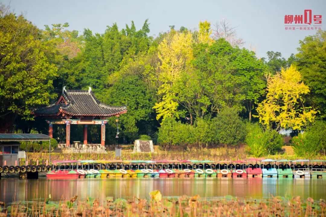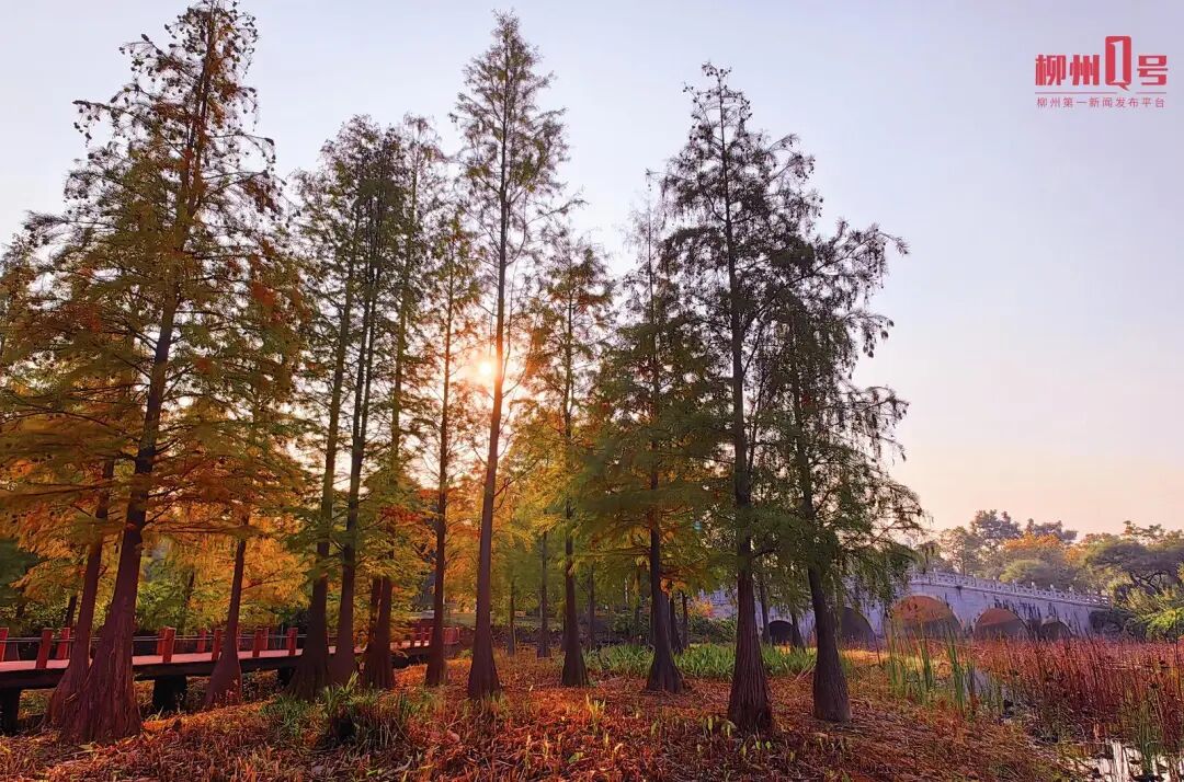 柳州的友友们 初冬的第一张 “美拉德风” 大片 你拍了吗? 12月的柳州 恰似大自然打翻了调色盘—— 焦糖色的落叶、赤红的水杉、金黄的银杏…… 把城市的浪漫渲染到极致! 柳州多个公园也换上了冬日“限定皮肤” 目之所及皆是治愈画卷 不必远行,出门即是诗和远方! 赶紧看看~错过又要等一年! 龙湖公园 12月2日,暖阳照耀大地,在柳东新区的龙湖公园内,成片的水杉黄澄澄、红艳艳,点缀在龙湖湖畔,仿佛一幅色彩鲜艳的油画,把柳州装扮得格外美丽。
