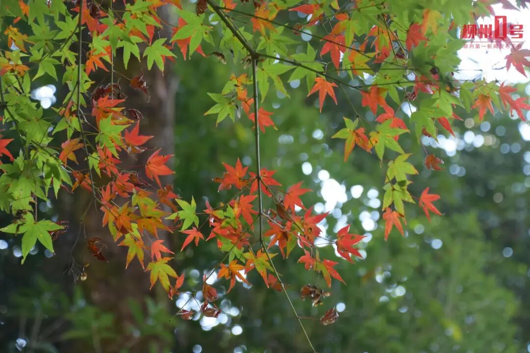 柳州园博园内的红枫 。 除了水杉,红枫、鹅掌楸等冬季着色树种也参与这场渐变色的盛宴。