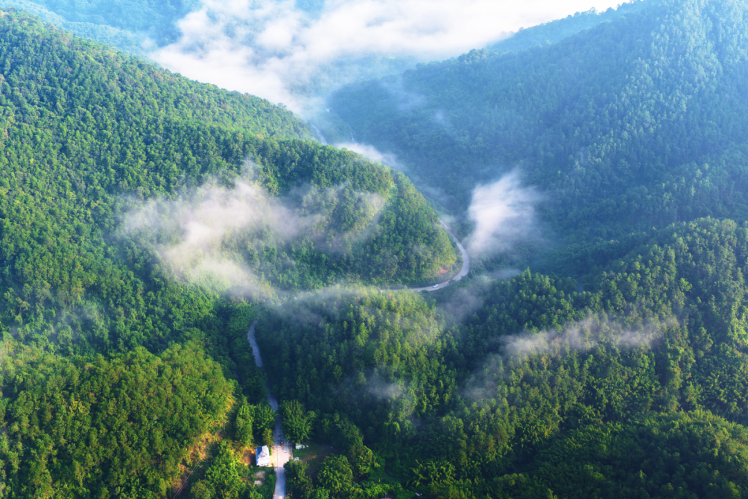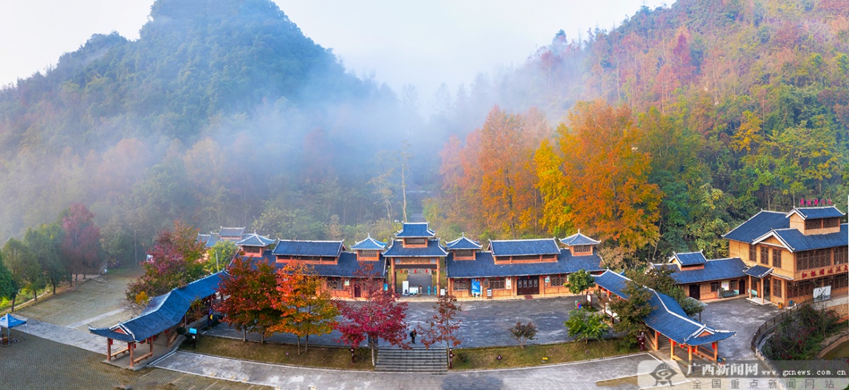 德保红叶森林公园中,枫林覆岭,烟雾绕峰。来源:广西云-广西日报 壮家阿妹唱着山歌迎客 非遗锦绣熠熠生辉 演绎着原生态的民族风情画卷 这里的故事 流淌在山水之间 更镌刻在世代相传的民族文化中
