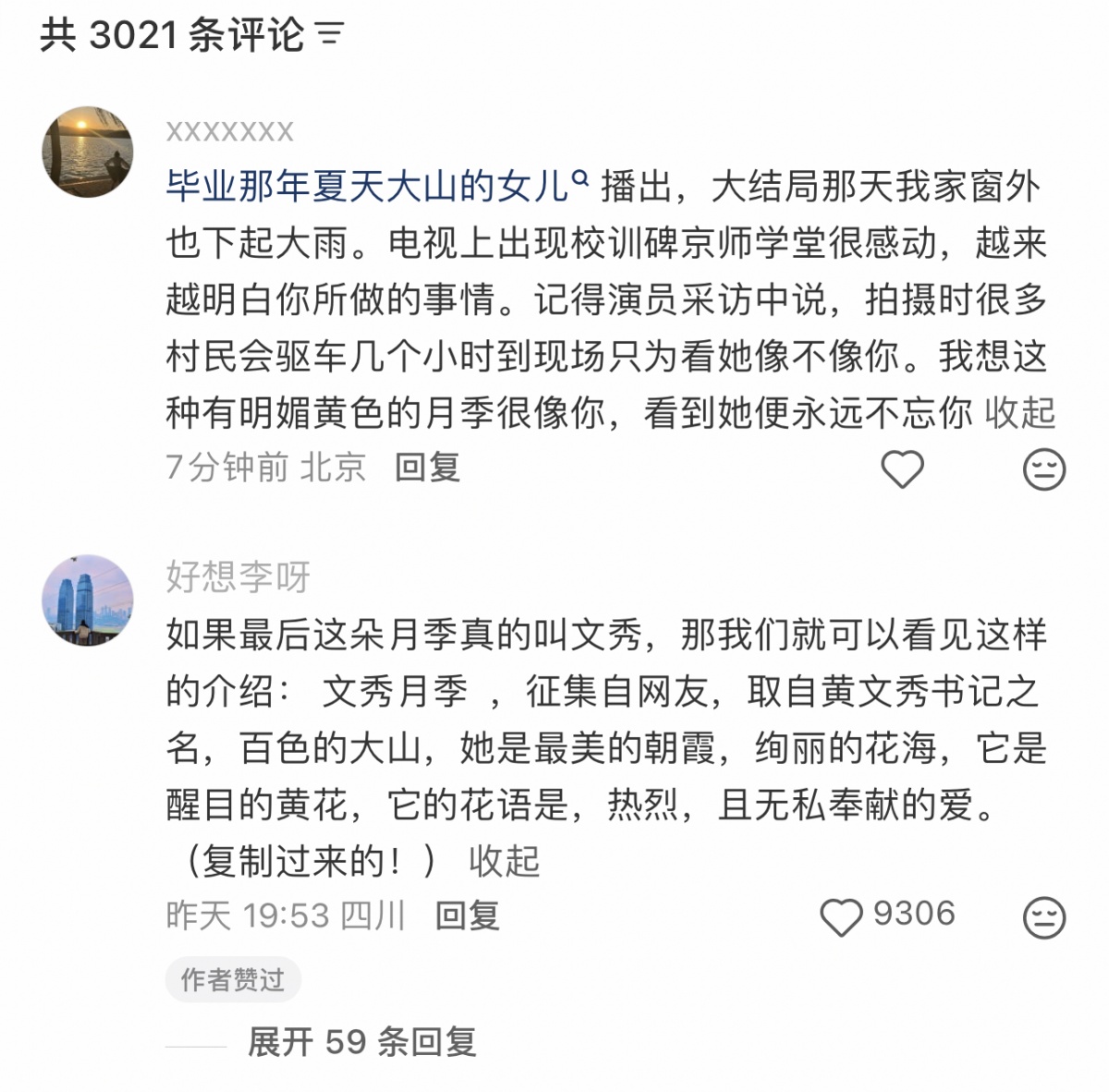发布于社交媒体的原帖及评论截图。来源:网友“植物眼” 网友们的积极响应,源于对黄文秀的深切缅怀与崇高敬意。黄文秀生前曾任广西百色市乐业县新化镇百坭村第一书记,硕士毕业后放弃大城市的工作机会,主动请缨回到革命老区投身脱贫攻坚事业。在她的带领下,百坭村88户418人脱贫,贫困发生率大幅下降,柑橘产量实现十倍增长,村集体经济收入翻倍,乡村基础设施显著改善。2019年6月17日,黄文秀在从百色返回乐业途中遭遇山洪因公殉职,年仅30岁。 “这朵月季叫文秀,她象征着热烈且无私奉献的爱”“我们用花名纪念她,也是在鼓励在基层奋斗的自己”……网友们在评论区的真情流露,让一场普通的花卉征名活动,变成一次温暖的集体致敬。 “我们决定采纳网友的建议,用‘文秀’作为我们自主培育的‘巾帼英雄’系列月季的第一个品种名。”28日晚,云南省农业科学院花卉研究所研究员蔡艳飞向记者确认这一消息。 “很早之前就听闻过文秀书记扎根大山,带领村民脱贫致富的事迹。我们农业科研人员精心培育‘中国芯’月季,帮助花农增收致富的目标,与文秀书记的初心使命和信念追求高度契合。”蔡艳飞表示,研究所经过研究,决定采纳“文秀”用作新培育月季的名字,并计划以此为开篇,启动“巾帼英雄”系列月季命名计划。 “新品种的诞生需要经过严格的测试,此前放在网上征名的编号为775-1的月季优株还在持续观测阶段,我们将对其进行全面评估,确保观赏性、抗病性以及生长特性都足够优良,再按规范流程开展新品种申报工作。”蔡艳飞说,如果编号775-1的优株未达到相关要求,他们将保留“文秀”的名字,挑选更优良的月季优株来匹配这个名字。“我们认为各方面性状都足够优秀的新品种,才能代表黄文秀书记坚韧的品格。” |