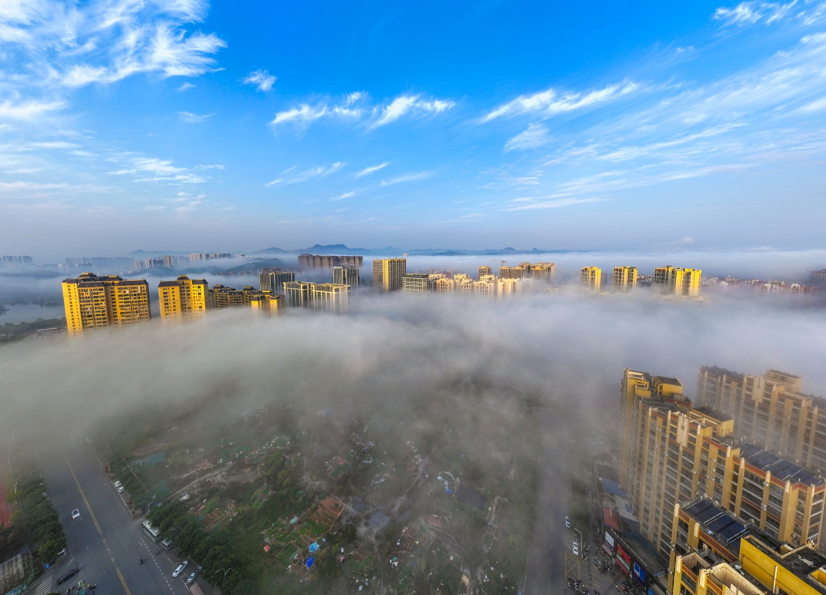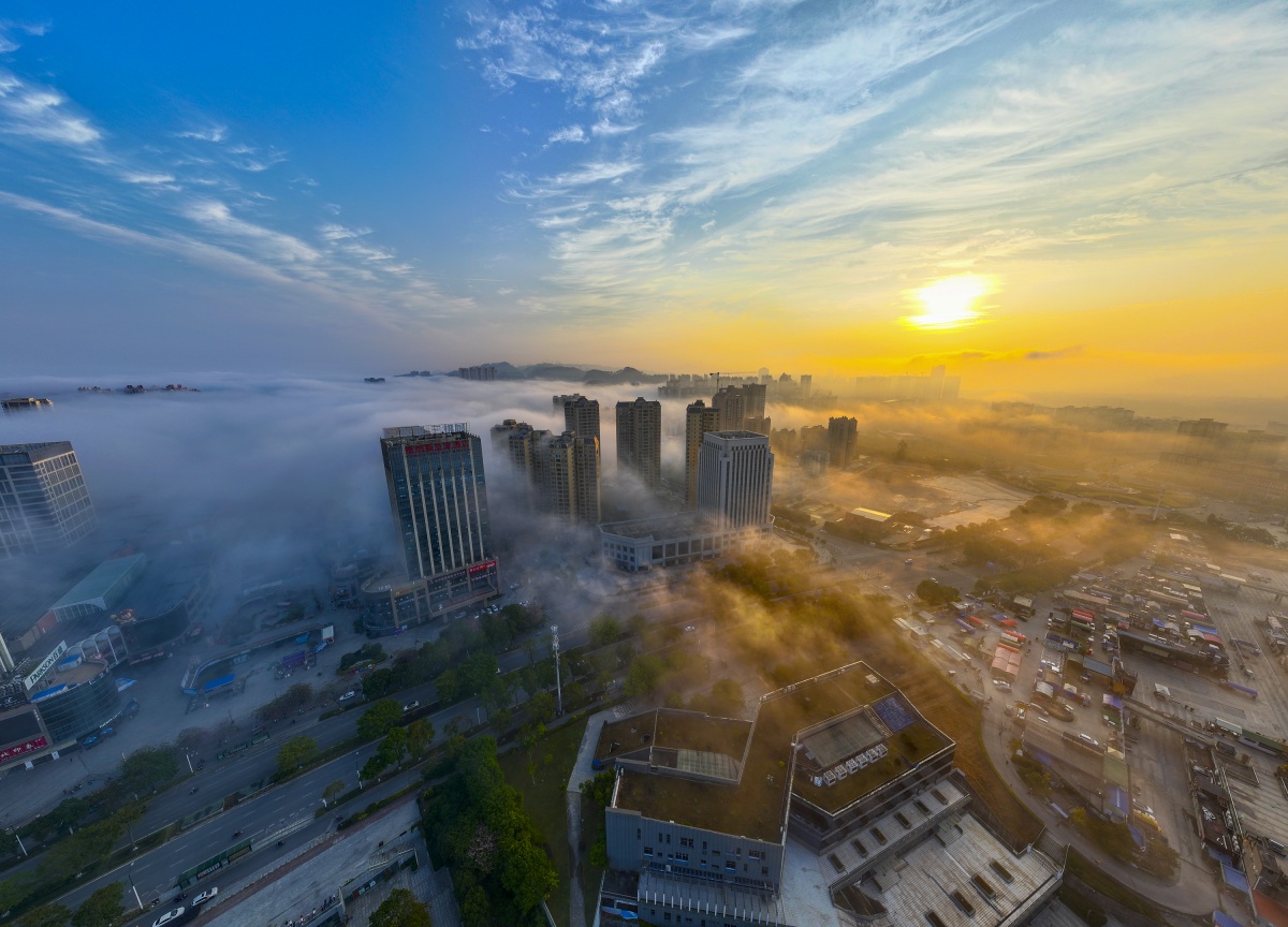 梧州市城区上空呈现梦幻云雾景观 何华文 摄