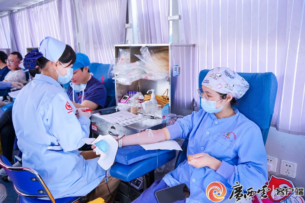在广西医科大学第二附属医院,医务人员踊跃献血。南宁中心血站供图 启动当天,分会场同样气氛热烈,爱心涌动。在南宁市第六人民医院,医务人员在忙碌的工作间隙,纷纷来到采血点。南宁市第六人民医院泌尿外科主管护师黄凤亚说道:“每一袋及时的血液都是一份生命燃料,我们能献出一份血,就可能为患者多赢得一分希望。”朴实的话语道出了广大医务工作者的共同心声。活动现场,许多医务人员已是多次献血的“老面孔”,他们以身作则,诠释着医者的仁心与大爱。