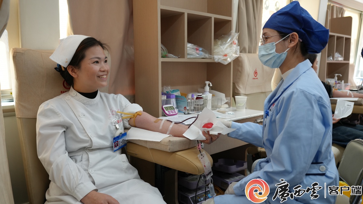 在广西医科大学第二附属医院,医务人员踊跃献血。南宁中心血站供图 据悉,自2011年起,南宁市连续在每年1—3月集中组织医务人员开展无偿献血活动,2026年是该活动开展的第16个年头。广大医务人员始终是献血队伍中最坚定、最可靠的先锋力量,在2025年“献血季”中,南宁市共有89家医疗机构积极组织,开展了99场团体献血活动,9324名医务工作者及爱心人士踊跃参与,累计献血量达323.73万毫升,献血人数和献血量同比上年分别增长了18.94%和21.55%,有力缓解了临床供血压力,为无数亟待救治的患者送去了生命的希望,彰显了白衣卫士们强烈的社会责任感和高尚的职业精神。 薪火相传,接力续航。2026年的“医务人员无偿献血活动季”采取主会场与分会场联动模式,主会场设在广西医科大学第二附属医院,南宁市第六人民医院、横州市卫健系统同步开展分会场活动,共同吹响热血集结号。活动启动首日,便得到了驻邕各医疗机构医务人员的积极响应,共有654人成功献血,累计献血量达22.98万毫升,充分发挥了医者仁心、热血传承的示范作用。 在主会场广西医科大学第二附属医院门诊大楼旁广场,爱心暖流驱散了冬日的寒意。献血登记处早早排起了长队,队伍中既有临床一线的医生、护士,也有医学生以及来自医院各岗位的工作者。“参与无偿献血是我作为医务人员救死扶伤天职的自然延续,也是一种社会责任。”广西医科大学第二附属医院心理卫生科副主任张治坤是第6次参与医务人员集体献血活动,她表示:“献血只是调用身体的一小部分储备,却为亟需用血的患者带来希望,非常值得。”