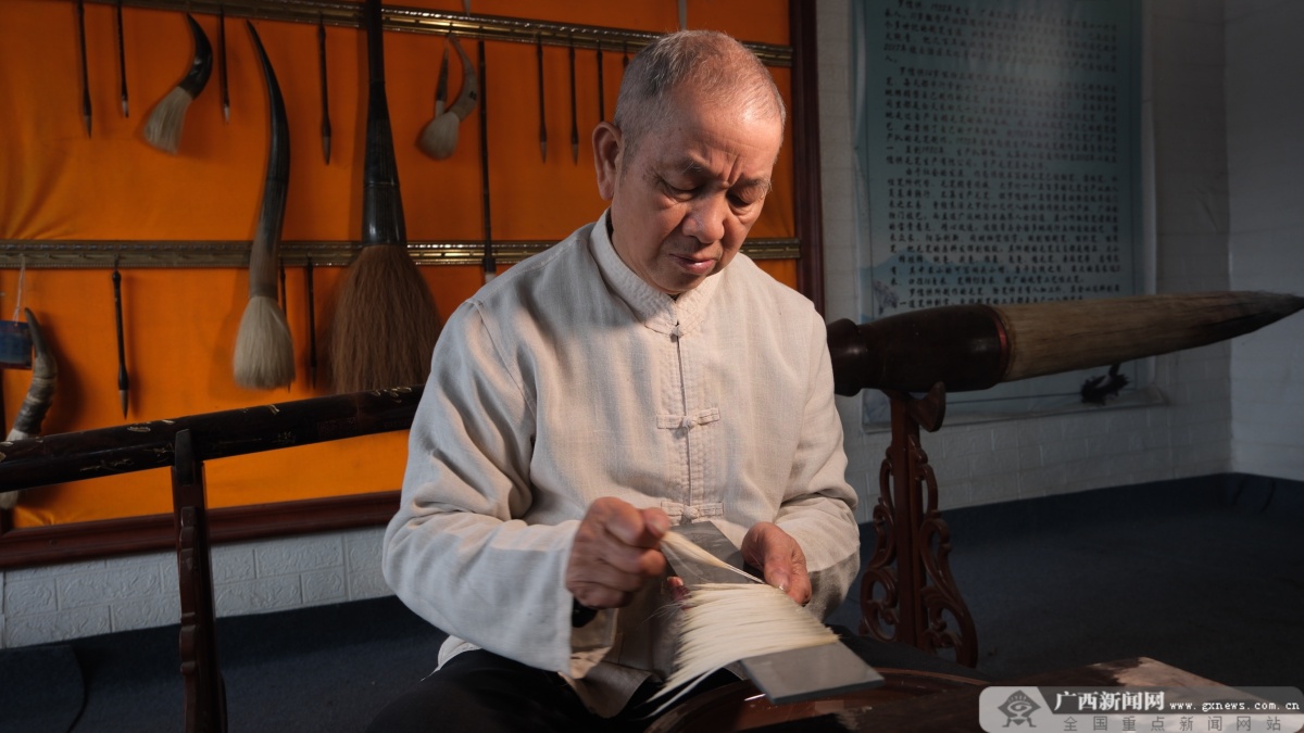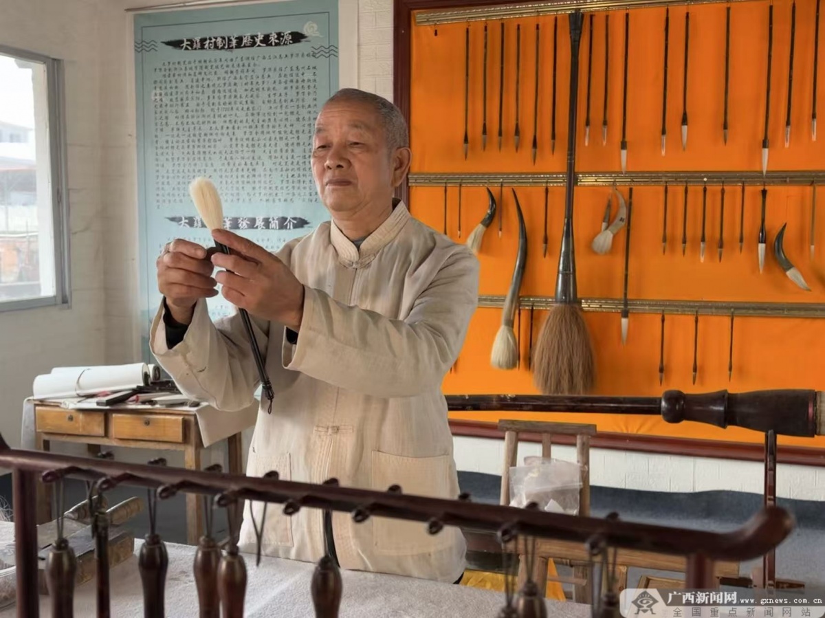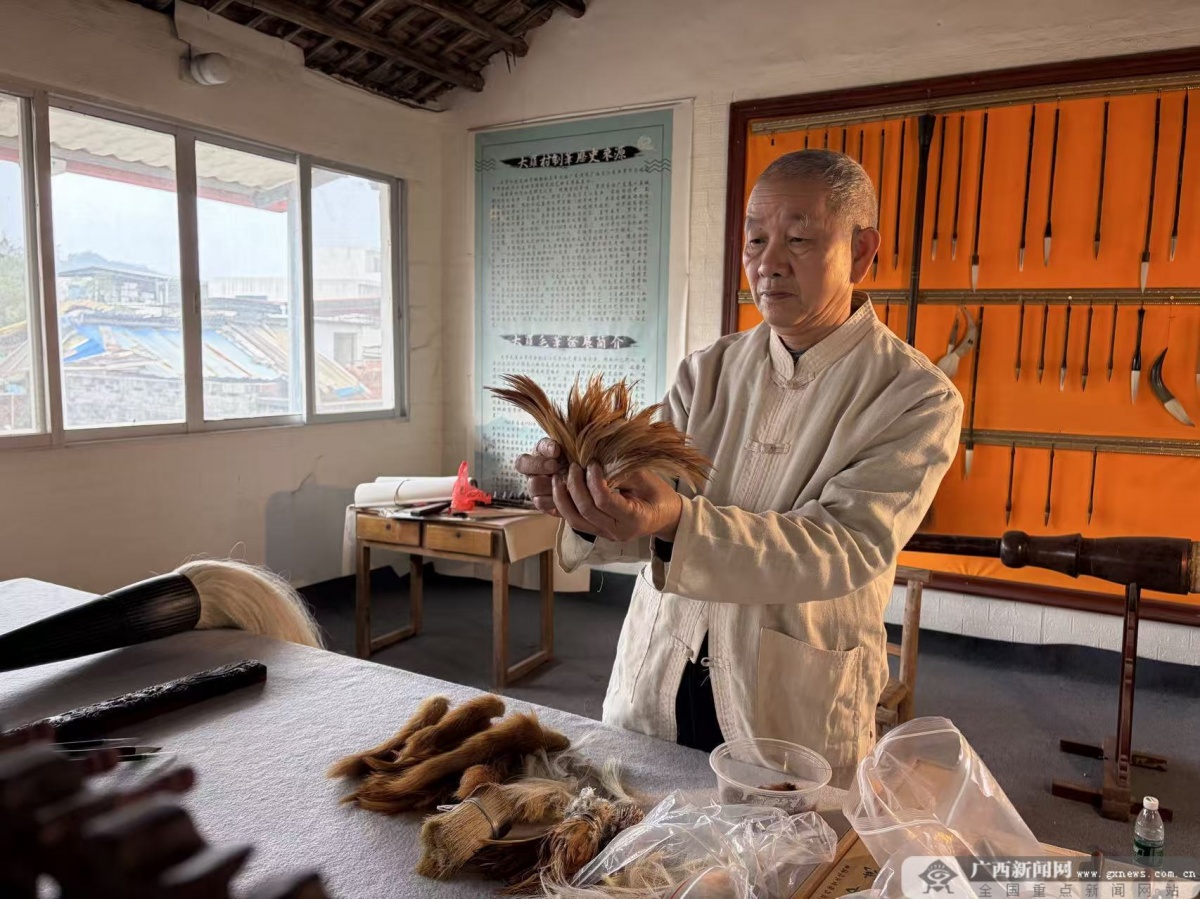 人间烟火气,最抚凡人心。广西云-广西日报特别推出“广西烟火”专栏,记录烟火人生里平凡者的故事。此前,专栏已陆续推出“八桂夜市”“八桂圩日”“年味一道菜”3个系列,今日开始推出第四期“发现民间绝活”系列报道,带您走近广西新生代手艺人,看他们以新技法焕活老技艺,用创意点燃市场,让民间绝活破圈生长、融入日常、激活产业;邀您在烟火升腾处,共鉴技艺新生,触摸匠心温度,感受文化脉动。 视频摄制:朱鋆瑶 笔锋在宣纸上行走,可轻若游丝,亦可重如磐石;能疾如清风拂过,亦能涩似老藤盘根。一切变化,尽在运笔者腕底细微的力度、速度与角度之间。自商朝起,这支看似简单的毛笔,便与华夏文明同生共长,成为中国人手中最独特、最深邃的文化象征。 南宁市宾阳县宾州镇大罗村,曾是远近闻名的毛笔制作专业村。12月27日上午10时,冬日暖阳漫过窗棂,将罗儒供的工作室浸透。工作台上,牛骨梳、齐毛板、刻刀、水盆各安其位;笔架上,狼毫、羊毫、紫毫等数百支毛笔悬挂如针……此刻,这位73岁的自治区非遗传承人正俯身与毫、竹、角展开对话。 大罗毛笔制作始于清代,罗氏先祖自浙江湖州善琏镇习得制笔技艺,传至后世又经革新,终成独具特色的工艺风格。2012年,大罗毛笔制作技艺跻身自治区级非物质文化遗产代表性项目名录。