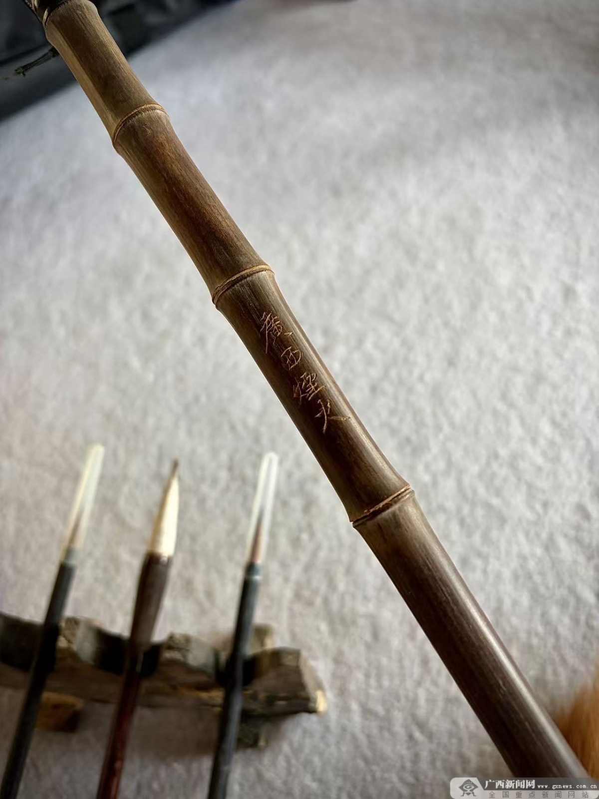 刻有千字经文的巨型笔。 鼎盛时期的大罗村,“户户闻削竹,家家见理毫”,大罗毛笔畅销国内,更远销至南洋。时光流转,许多作坊的灯火渐次熄灭,唯有罗儒供等几位老师傅,坚守着这项古老的技艺。“2026年,我想联合本地老字号打造‘桂笔’品牌,还打算走进校园、展会,传授非遗技艺,让大罗毛笔更好传承。”罗儒供望着窗外暖阳,语气坚定。 夕阳将斜影拉长,罗儒供落下最后一刀,轻轻吹去竹屑,将新成的毛笔挂上笔架。这些浸润匠心的毛笔,即将踏上各自的旅程:或走进蒙童书房,引他们提笔开蒙;或栖身书家案头,伴他们挥洒云烟。 次日清晨,工作室的木门仍然会准时推开。暖阳再次漫入,照亮空气中浮动的微尘。罗儒供又将俯首案前,在一梳一改、一刻一琢之间,迎接一支新笔的诞生。那笔尖凝聚的,是百年匠心的守候;那笔墨流淌的,是古老文明未曾断绝的呼吸。这门隐于乡野的绝活,正沿着那双布满岁月痕迹的手,续写着它的当代篇章。