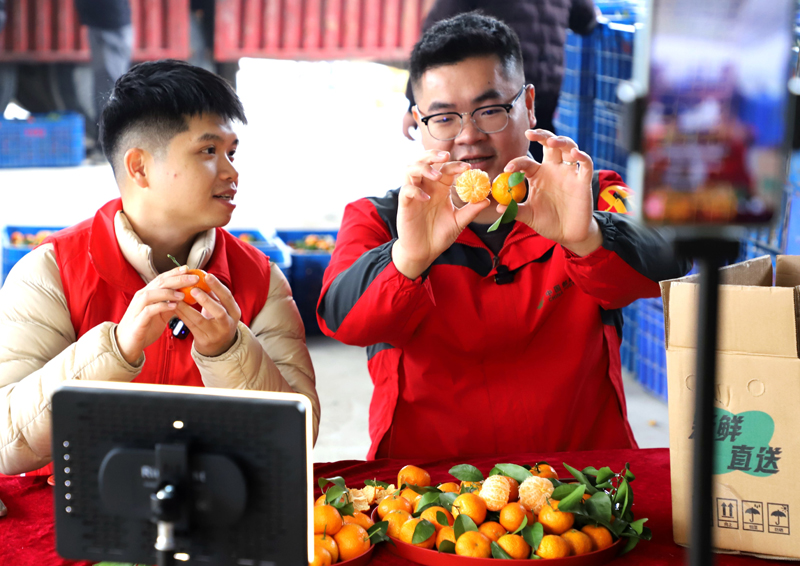 现场直播带货。 近年来,钟山县通过柑橘黄龙病病株整治工作,大力整治失管果园、耕地“非粮化”,柑橘种植逐步由分散种植到精细管理,促进柑橘产业良性发展。全县水果种植面积稳定在19.71万亩,年产量28.39万吨,同比增长6.05%,产值9.7亿元。打造特色水果产业示范带(区),重点建设钟山镇-回龙镇-公安镇香水柠檬核心产业带、花山猕猴桃、同古青梅核心示范区、特色柑橘优势区、新特优水果示范片,推进特色优势水果规模化、标准化、品牌化建设,实现绿色增收、生态建设与乡村振兴的“多赢”局面,铺就一条乡村振兴“甜蜜”之路。 |