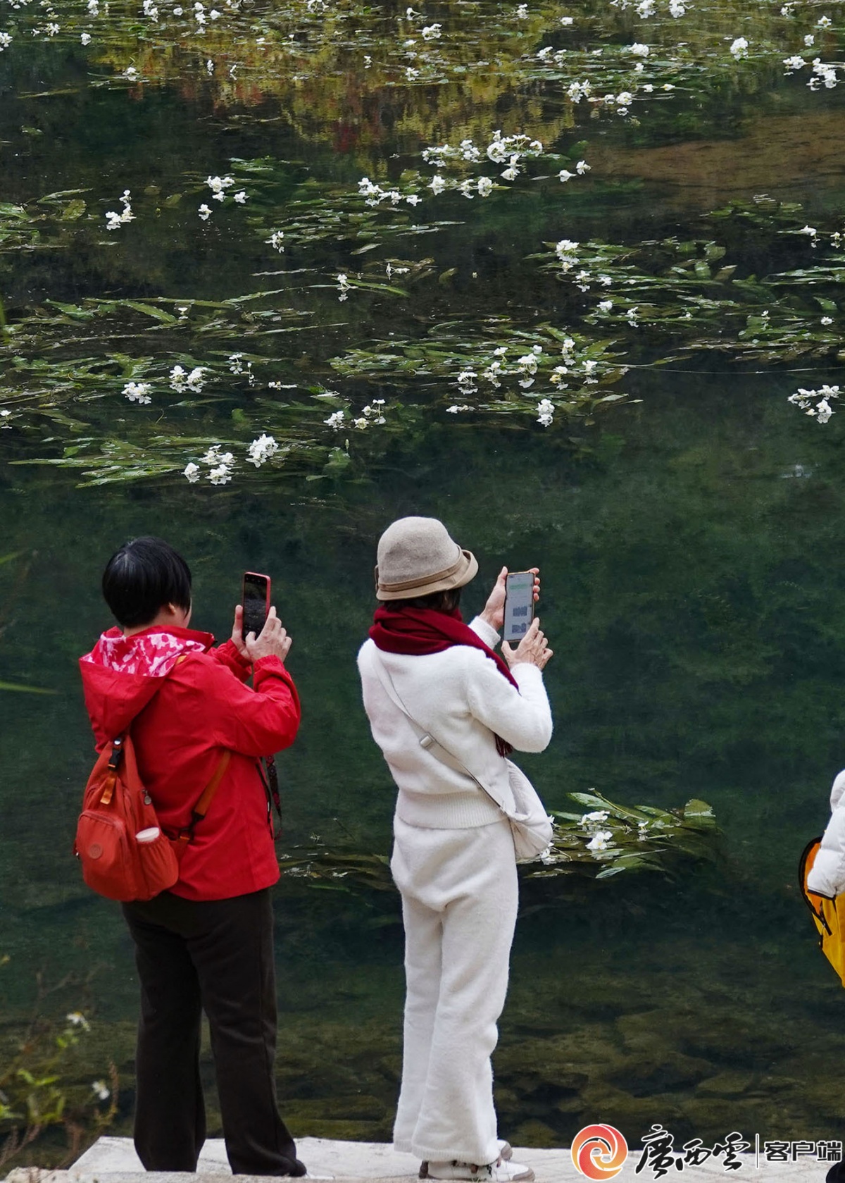 柳州市鹿寨县中渡镇洛江水域海菜花吸引众多游人驻足观赏 喻湘泉 摄
