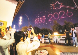 2025年12月31日晚,南宁市民观赏无人机表演、打铁花等跨年活动,共迎新年。记者 游拥军 摄(广西云-广西日报)