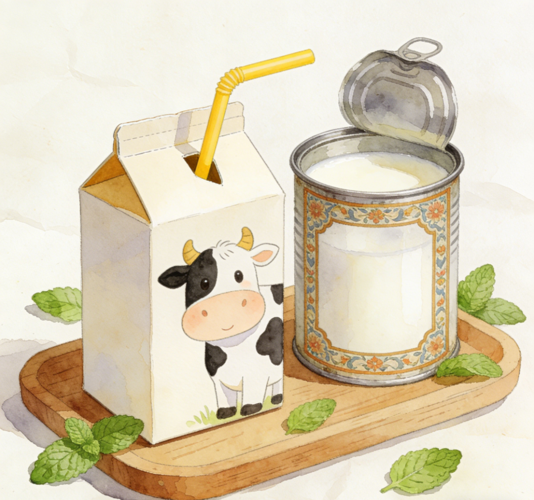 图片来源:AI生成 液态奶VS奶粉应该怎么选? 身体健康、没有特殊营养需求的人群,若追求新鲜口感,优先选巴氏奶,但要注意保质期和冷藏;若看重方便储存和性价比,选超高温灭菌奶或奶粉;若是经常在外、不便冲调,直接选超高温灭菌奶更省心;若追求便捷、开瓶即喝,选液态奶更合适。 身体健康、饮食均衡的中老年人,喝液态奶和纯奶粉,营养区别不大。 肠胃敏感、喝凉奶容易腹泻的人,可选奶粉,温水冲调的奶粉温度更温和,对肠道更友好。 饮食不均衡、需要补充多种营养素的人,可选强化多种营养的奶粉,如强化型中老年奶粉,能一站式补足日常饮食的营养短板。 看懂配料与营养 看执行标准:液态奶认准GB 19645-2010(巴氏奶)或GB 25190-2010(灭菌乳)、GB 25191-2010(调制乳);奶粉参考GB 19644-2024。 看配料表:首位应为“生牛乳”或“乳粉”,避开首位是“植脂末”“糖”“麦芽糊精”等的产品。奶粉还应注意糖的添加量和是否额外加了油脂。 看营养成分:无论液态奶还是奶粉,蛋白质含量是衡量质量的关键指标。