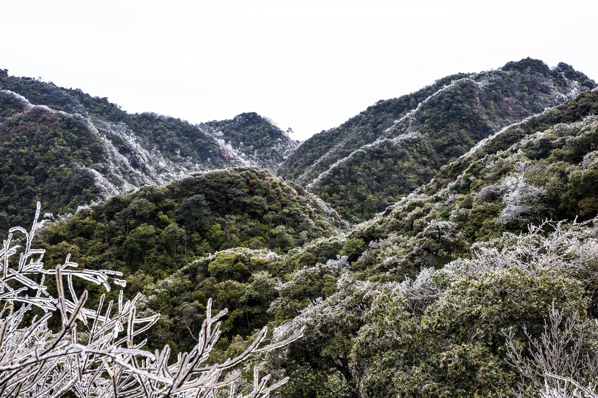 大明山漫山的林木都裹上了霜雪的外衣 黄云清 摄