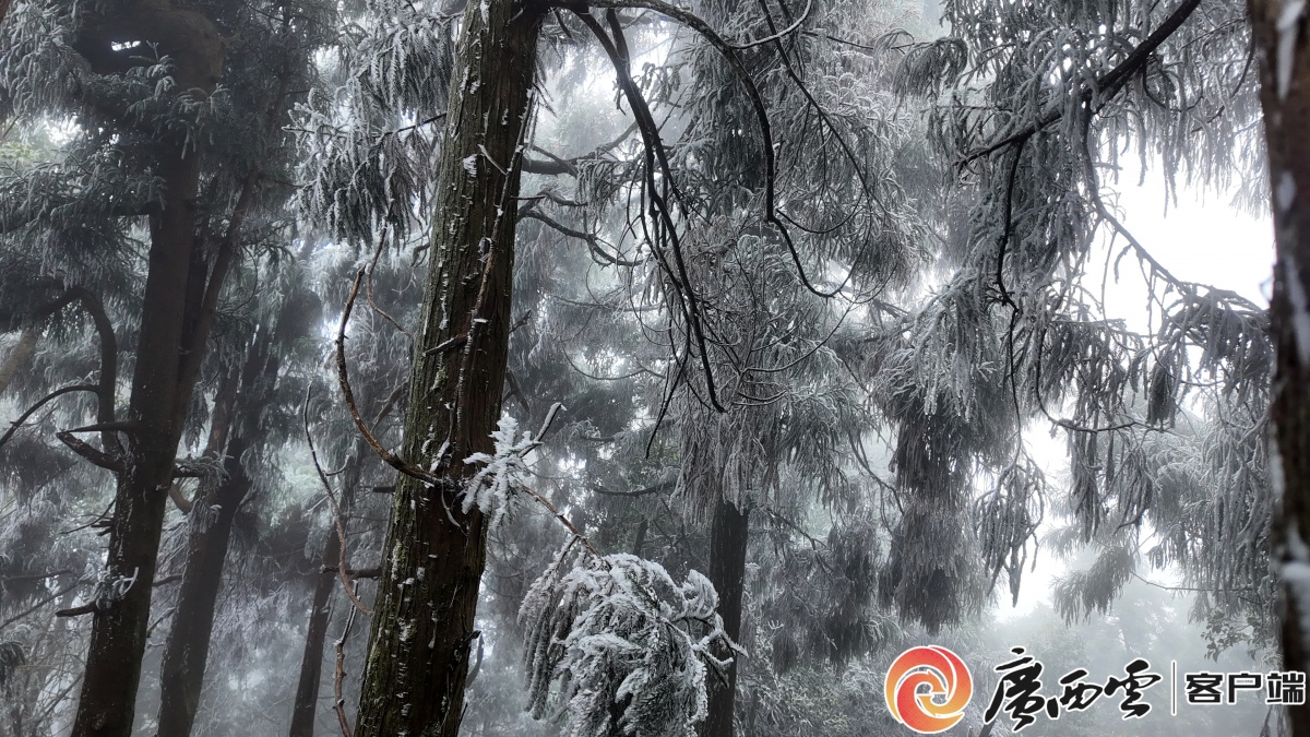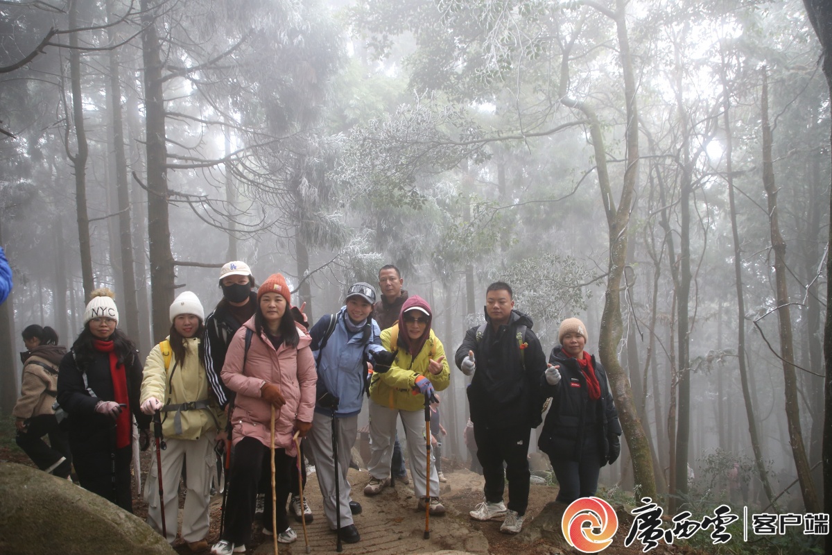 平天山雾凇景观。邹庆林 摄 受寒潮天气影响,1月22日,贵港平天山迎来了2026年首场大规模雾凇与结冰景观,漫山草木凝霜挂雪,瞬间刷爆了贵港人的朋友圈,引得游客驱车奔赴这场“南方限定”的冰雪之约。