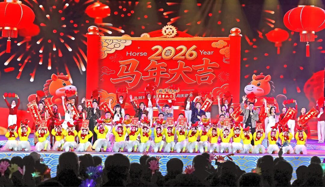 欢乐祥和的晚会现场。记者 卢飞 摄 本场晚会精心设计了“乡音乡情·年味如歌”“幸福花开·暖润民心”“同心筑梦·喜乐前行”三大篇章。序章舞蹈《红城启春》《福马迎新》以热烈昂扬的节奏瞬间点燃现场气氛;上篇的春歌联唱《团团圆圆》等作品旋律欢快,唱出了人们对新春佳节的美好期盼;街舞《壮击》与歌曲《梦栖山水 心悦百色》则展现了传统与现代在百色交融的活力。 晚会中,非遗与创新成为亮眼双翼。壮族八仙鼓《非遗花开壮乡春》鼓声铿锵,彰显了民族文化的深厚底蕴;杂技《冉冉薪火》片段惊险优美,令人赞叹。备受关注的戏曲新融合节目《我的新衣》巧妙地将传统戏曲精髓与当代流行元素相结合,创意十足。百色市地方戏曲传习所所长陈万斌在演出后介绍:“《我的新衣》寓意着传统戏曲在新时代的焕新与传承。我们尝试打破边界,融入年轻人喜爱的表达方式,让老戏迷感到亲切,也让新观众觉得有趣,希望为传统艺术穿上吸引当代观众的‘新衣’。” 台下观众反应热烈,掌声与喝彩声不绝于耳。带着家人前来观看的市民庞女士兴奋地表示:“节目太精彩了!既有我们熟悉的壮族味道,又有让人眼前一亮的新形式。特别是看到小朋友表演的节目和那些热闹的歌舞,感觉年味特别浓,我们全家都很喜欢!” 晚会在恢宏热烈的歌舞《山海庆丰谣》中圆满落幕。整台晚会如同一幅流动的文化画卷,既深情回顾了百色的乡土根脉,也生动描绘了团结奋进的时代新景,充分表达了红城儿女对家乡的深情礼赞与对未来的美好憧憬。 |