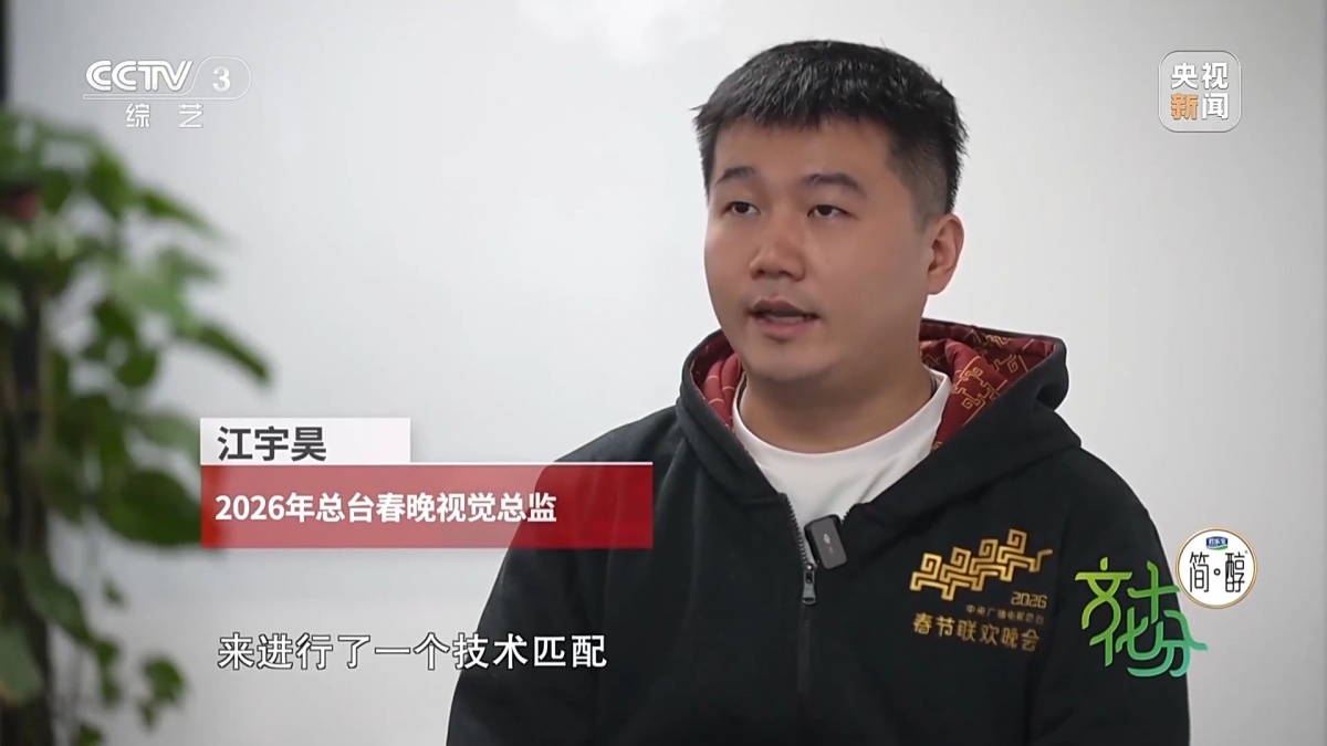 2026年总台春晚视觉总监 江宇昊:前三年的时候,在视觉技术层面我心里是有100%的自信。今年,其实状态是不一样的。我们选择了一个市场上非常前沿的AIGC的实景拓展技术,来进行技术匹配。12个月,它有12个人物、12个场景,有场景叙事、空间调度的叙事,以及人物之间的关联叙事等多重叙事。所以我们整个视觉呈现要基于这些空间调度和渲染技术来去做匹配。过程中,其实是一直摸索着往前走的。