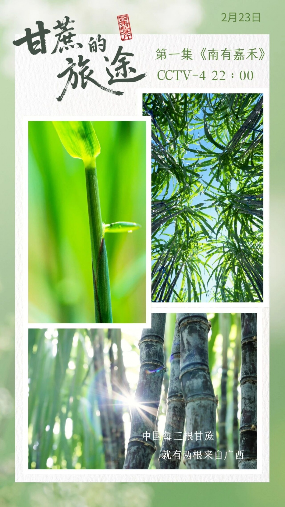 四集纪录片《甘蔗的旅途》 CCTV-4 2月23日至26日 每天22:00播出 广西卫视 2月24日至27日 每天21:40播出 敬请关注~ |