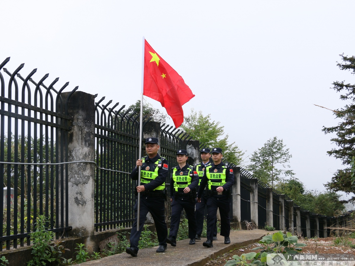 蒋萍(中)和村干部查看油茶林。通讯员 何元官 摄 今年不一样了。村集体统一收购茶果,小作坊加工变成了标准化生产。蒋萍帮着跑销路、拓市场,原本不起眼的山茶油,成了村里的特色产品。 “书记帮我们跑前跑后,我们心里有底,更有信心种好这原生态的好东西。”覃利双的笑声在山间格外清亮。 去年,板銮村集体经济收入达到64.78万元,合作社1317名成员,每人领到了200元的分红。 “今年更得多踩油门,少踩刹车。”蒋萍掰着手指头数,“山泉米、山茶油、花生油,要多上平台、多跑展会、多找客户。销路宽了,分红才能更多,村民笑容才更甜。” 故事4: 靖西市吞盘边境派出所民警—— 界碑无言,守护有声 2月24日清晨7时,桂西南中越边境的靖西市吞盘乡晨雾如纱。这时,许多人或许还在梦乡沉睡,但在吞盘边境派出所营区内,民警们早已整装待发。 靖西市吞盘边境派出所民警:界碑无言,守护有声! “节后返乡外出人流骤增,我们守护的23.5公里边境线,容不得半点马虎!”所长蒋复军声音洪亮。简短部署后,警车轮胎碾过湿润的乡村路,驶向各自执勤点。 9时,乡文化广场热闹起来。一场抛绣球活动正在进行,乡亲们围得里三层外三层。