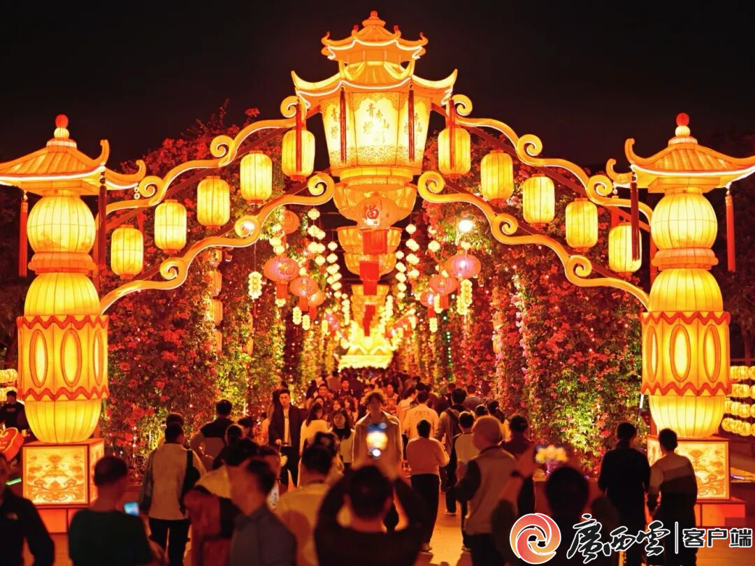 青秀山“壮美广西·灯耀南宁”新春灯会。 南宁石门公园3000多株樱花进入盛花期,粉白相间、缀满枝头;南湖公园玉兰花淡雅高洁、暗香浮动;大明山的灯笼花热烈似火、娇艳欲滴……游客们无需裹紧厚重棉衣,便可漫步花林、赏美景、品美食,在融融暖意中感受新春惬意。 “暖冬如春遇上9天长假,叠加邕州古城整体开放,南宁的文旅市场被彻底点燃。”南宁文旅集团副总经理唐菲介绍,古城内数百家商铺、几十项民俗演艺活动同步上线,将昔日“半日游”升级为“全天逛、整夜玩”。 夜幕低垂,邕州古城更添沸腾气息。中山路、水街与三街两巷互联互通,连缀成一幅热闹非凡的“邕城上河图”,将老南宁的烟火与新时代的繁华景象完美融合。 三街两巷内的城隍庙前,“五路财神”扮相的工作人员笑容满面,向孩子们派发新春糖果;仓西门外,年轻人举着手机扫描AR互动点,屏幕里金色“骏马”踏着祥云送来马年祝福。2月15日至23日,进入邕州古城的游客达203万人次,截至23日晚6时,邕州古城营业额已突破2416万元。