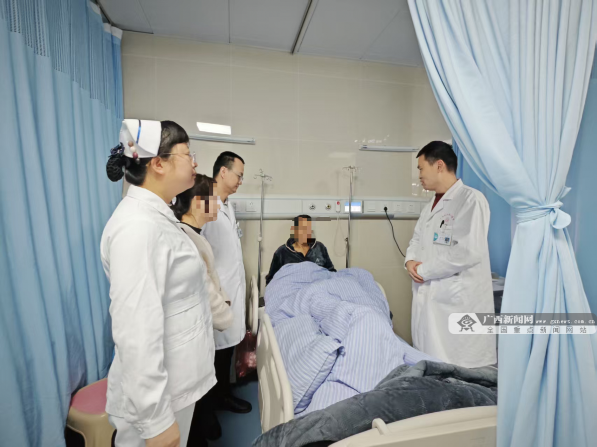 广西新闻网桂林2月28日讯(通讯员 唐梅)2月28日,桂林的莫先生(化名)在家人的陪同下,从自治区南溪山医院出院。谁能想到,除夕当天,他曾因一场突如其来的意外,命悬一线。是医院多学科团队的除夕坚守和紧急救治,将他从死亡线上拉了回来,让他得以重获新生。