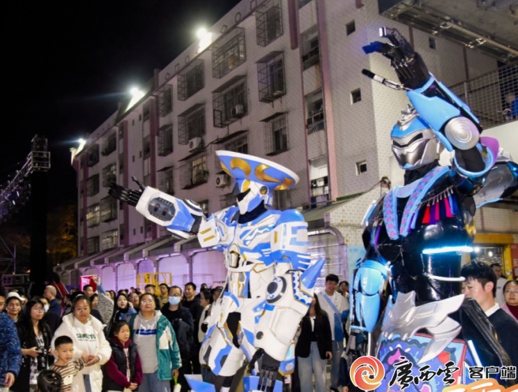 民族机甲秀。资料图 民俗表演是本次活动的重头戏。活动期间,在解放街、百通厂、文明街等地,田阳壮族舞狮、瑶族婚礼秀、隆林五彩民族服饰秀、德保矮马展示、那坡壮族民歌等非遗项目将轮番上演。此外,3月2日至3日,解放街还将设置民族机甲互动环节,两组高达3米、融合了百色世居民族元素的机甲将与游客互动,展现传统与潮流碰撞的独特魅力。 花灯集中展示将是元宵夜的亮点。由多家单位分别设置的大型花灯及小型花灯,将在梵木·百色水岸城的文明街、西街、百通厂等区域集中点亮,营造“火树银花闹元宵”的浓厚氛围。作为预热活动,2月28日至3月2日每晚,解放街千姿百色戏台将连续上演“文化润景·红城戏台周周有戏”惠民演出,为元宵节当天的主题活动预热。 |