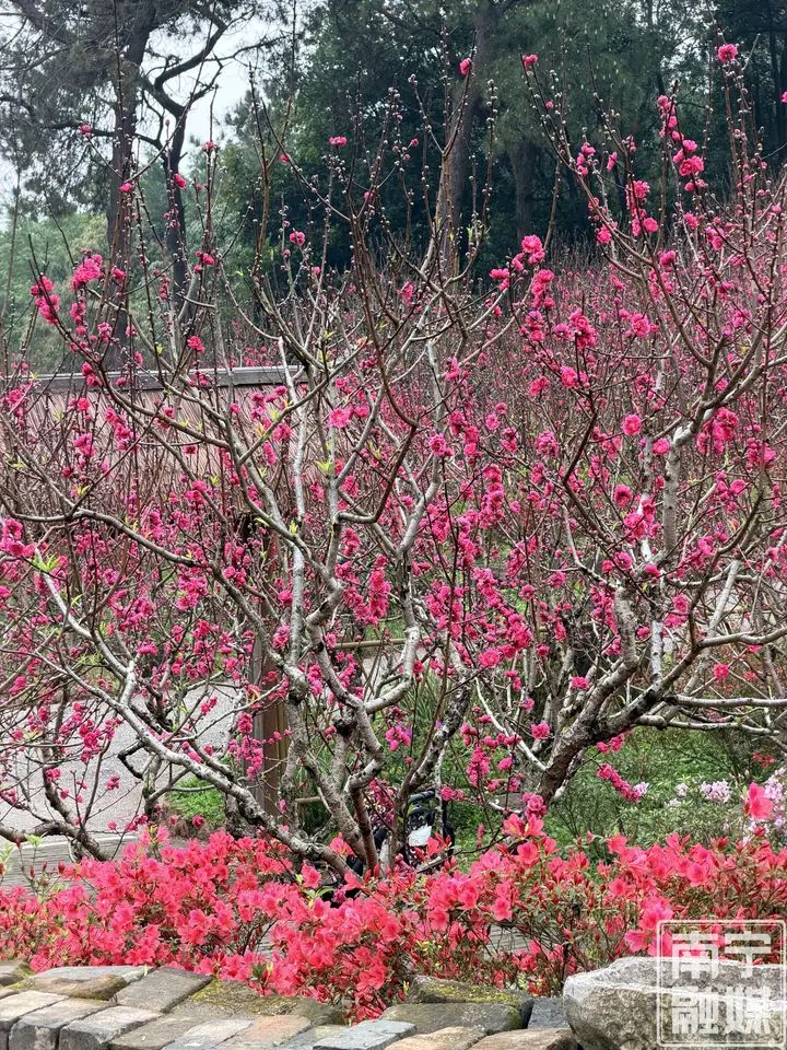 南宁青秀山风景区桃花岛上12万株的桃花已笑春风,碧桃、毛桃、寿星桃、宫粉桃等10多个品种,让人心醉神怡。此外,樱花、金鱼草、豆梨等各类花卉次第绽放,清风拂过,花香四溢,构成一幅灵动秀美的春日画卷,处处洋溢着生机与暖意,让游客在醉人春色中感受繁花似锦的美景。