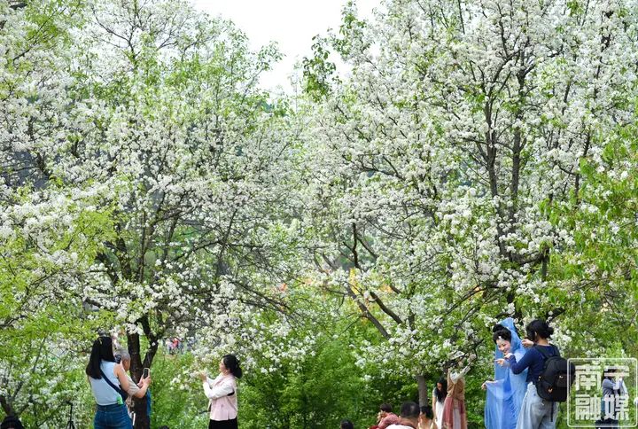 被黄花风铃吸引而来的游客一边观赏一边拍照乐而忘归,纷纷留下自己与黄花风铃最动人的邂逅,“我每年都来这里拍照打卡,真的很漂亮,看着心情十分愉悦。”游客王女士穿着一身白色裙与美景拍照,笑得十分开心。