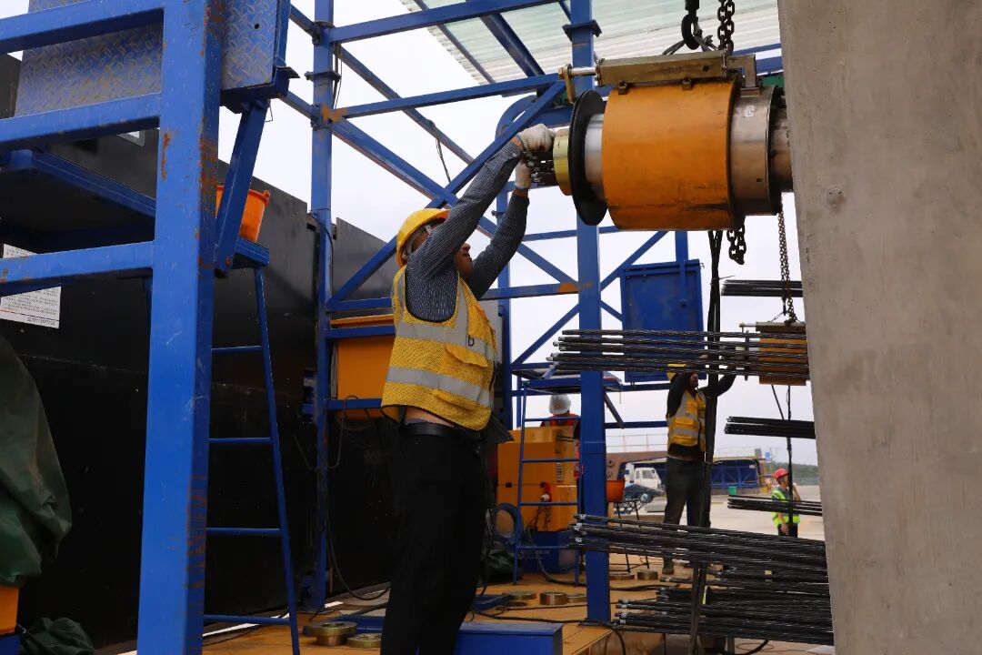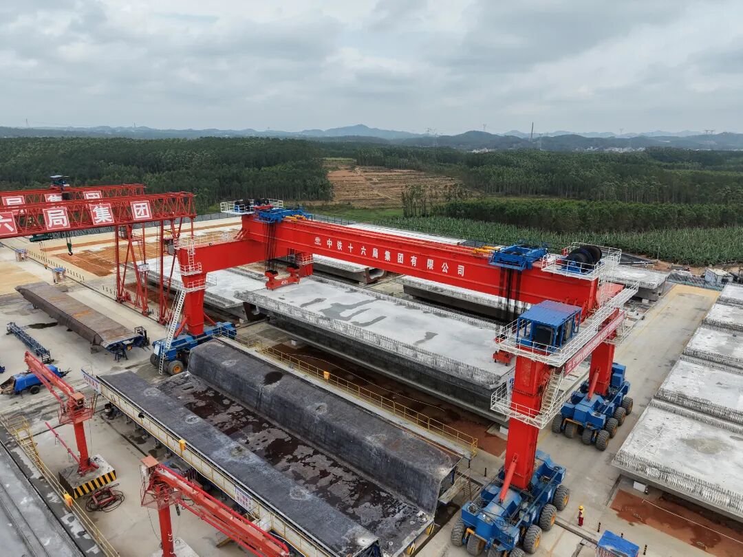 合湛高铁广西段最大梁场——北海制梁场承担着688榀简支箱梁的预制与架设任务,钢筋生产、模板制作、张拉试验等各个环节正有序进行,力争今年7月前完成全线首榀箱梁的架设任务。