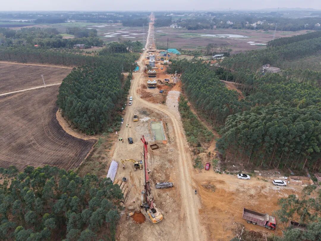 2月28日,新建合浦至湛江高速铁路(以下简称合湛高铁)广西段已全面复工,沿线25个工点机械轰鸣作响,700多名建设者奋力推进项目建设。