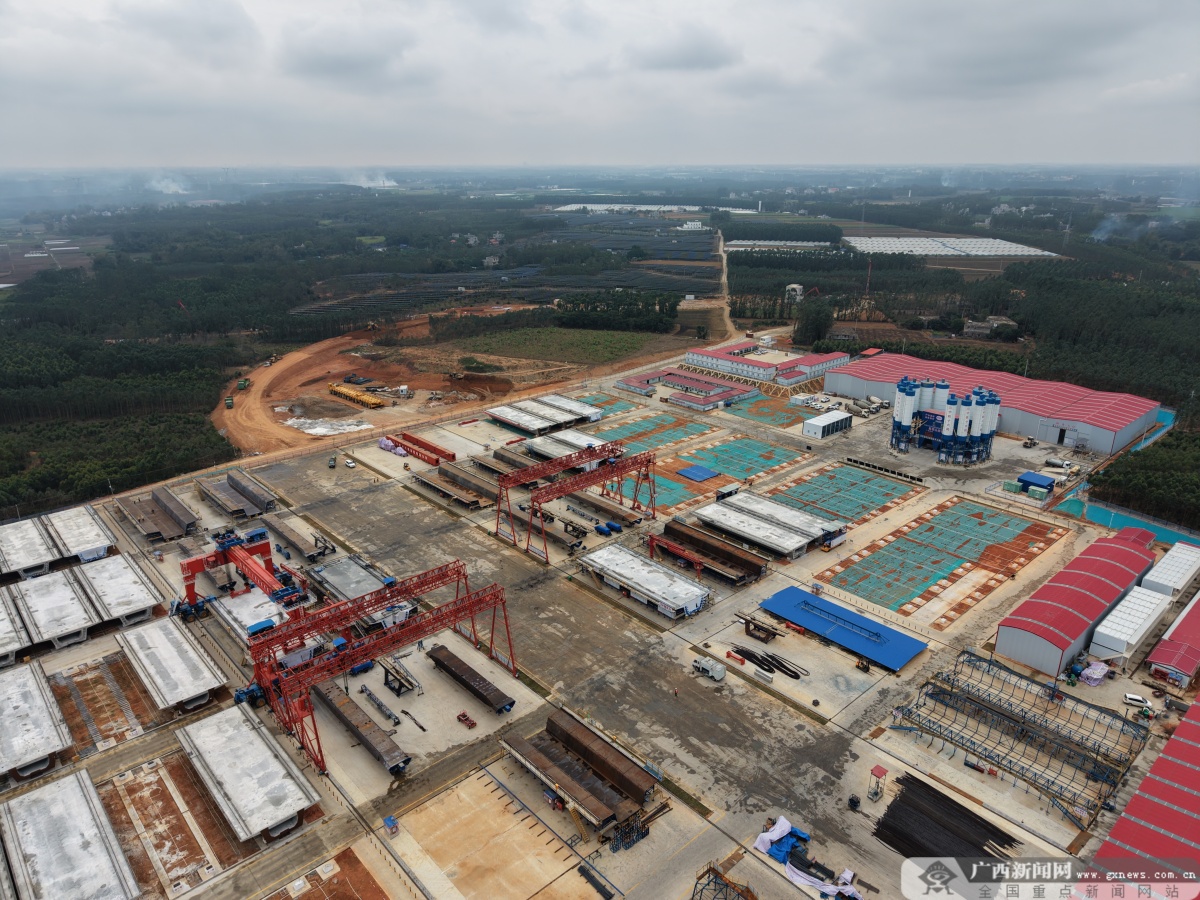 合湛高铁南康东干渠特大桥施工现场航拍。莫小斌 摄 负责大桥施工的中铁十六局合湛高铁项目部工区负责人赵长威介绍,南康东干渠特大桥全长约1.27公里,是打通合湛高铁广西段架梁通道的重要工程之一。新年伊始,他们新增两支作业队伍对大桥展开全面施工,目前桥梁桩基施工已基本完成,接下来将按照每天完成2个承台、3天完成1个墩身浇筑的计划推进大桥建设,确保架梁通道按期打通。 合湛高铁广西段最大梁场——北海制梁场承担着688榀简支箱梁的预制与架设任务,钢筋生产、模板制作、张拉试验等各个环节正有序进行,力争今年7月前完成全线首榀箱梁的架设任务。 “节后复工,首要任务就是确保安全。我们已对所有工点进行了详细的复工条件检查确认和评估审批,目前各工点人员已返岗复工。下一步,我们将优化施工方案,组织参建单位上足施工资源,提高施工效率,确保合湛高铁广西段30亿元的年度投资任务期到必成。”云桂铁路广西公司合湛高铁建设指挥部高级工程师董俊文说。 合湛高铁正线全长约139公里,设计时速350公里,是我国“八纵八横”高速铁路网中的包(银)海通道和沿海通道的重要组成部分。截至目前,合湛高铁广西段桥梁桩基完成6274根,建成桥墩206个,路基土石方完成32.31万立方米。项目预计2028年建成通车,届时对扩充广东、广西沿海铁路运输能力,优化完善区域铁路网布局,方便沿线群众出行,推动北部湾城市群建设、促进沿线经济社会高质量发展,具有十分重要的意义。 |