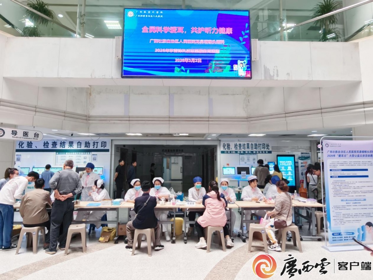 义诊服务现场。广西云-广西日报实习生 谢晗昕 摄 活动现场,该院耳鼻咽喉头颈科的专家团队为耳聋、耳鸣、中耳炎、眩晕等相关疾病患者进行义诊,对有需要的患者提供个性化诊疗建议,并就助听器验配、耳聋基因筛查、新生儿无创耳廓矫正治疗技术及医保报销流程等进行讲解,帮助患者了解最新医疗相关政策。