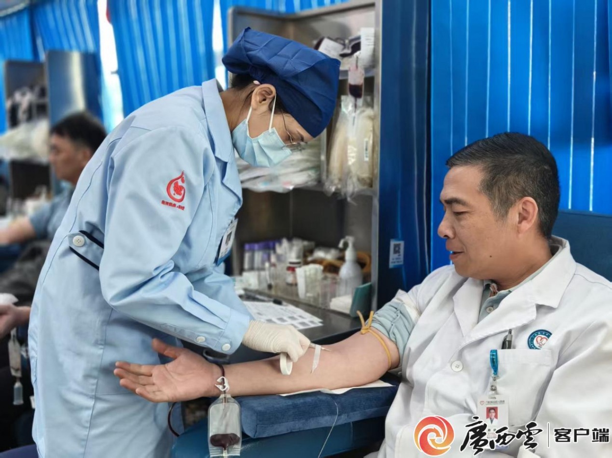 无偿献血现场。广西云-广西日报实习生 谢晗昕 摄 现场,在志愿者的引导下,献血者们依次完成信息登记、健康检查、血液采集等流程,全程秩序井然。不少医护人员忙完手头工作后,便匆匆赶来献血,献血后又立刻返回岗位,用实际行动诠释着医者的责任与担当。