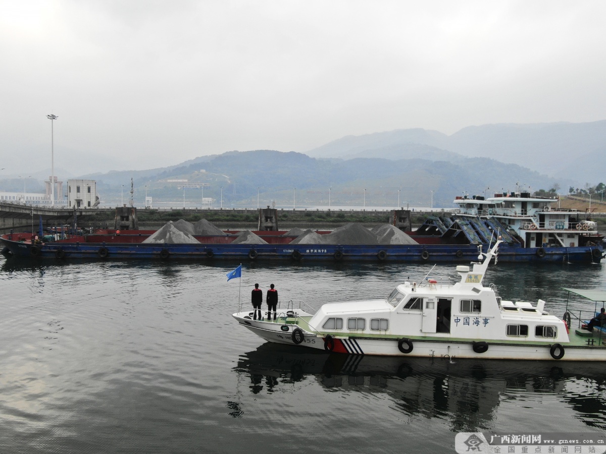海事执法人员在大藤峡引航道现场驻守。林宇航 摄 为保障岁修期间水上交通安全稳定,贵港海事局提前发布航行通告,在桂平辖区划定重点水域船舶临时停泊区,提醒船舶合理调整航次计划、选择安全水域停泊,并强化停泊期间值班值守。同时联合交通运输综合行政执法部门、航道养护中心等单位,加强船闸下引航道清淤施工船舶及现场安全监管,督促施工单位落实安全防护措施,及时整改风险隐患,确保施工安全有序推进。