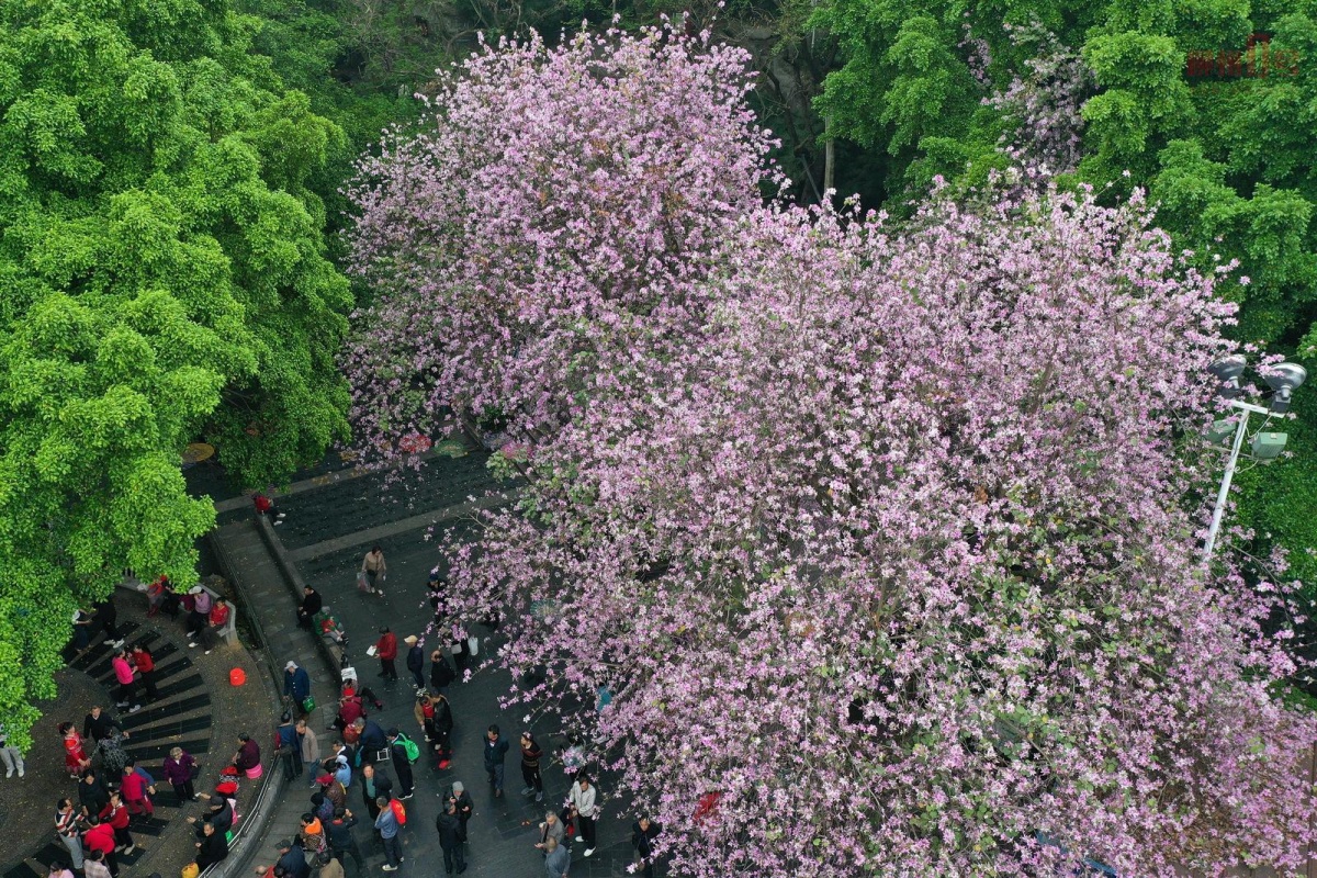 鱼峰公园洋紫荆与悠扬的山歌相伴。