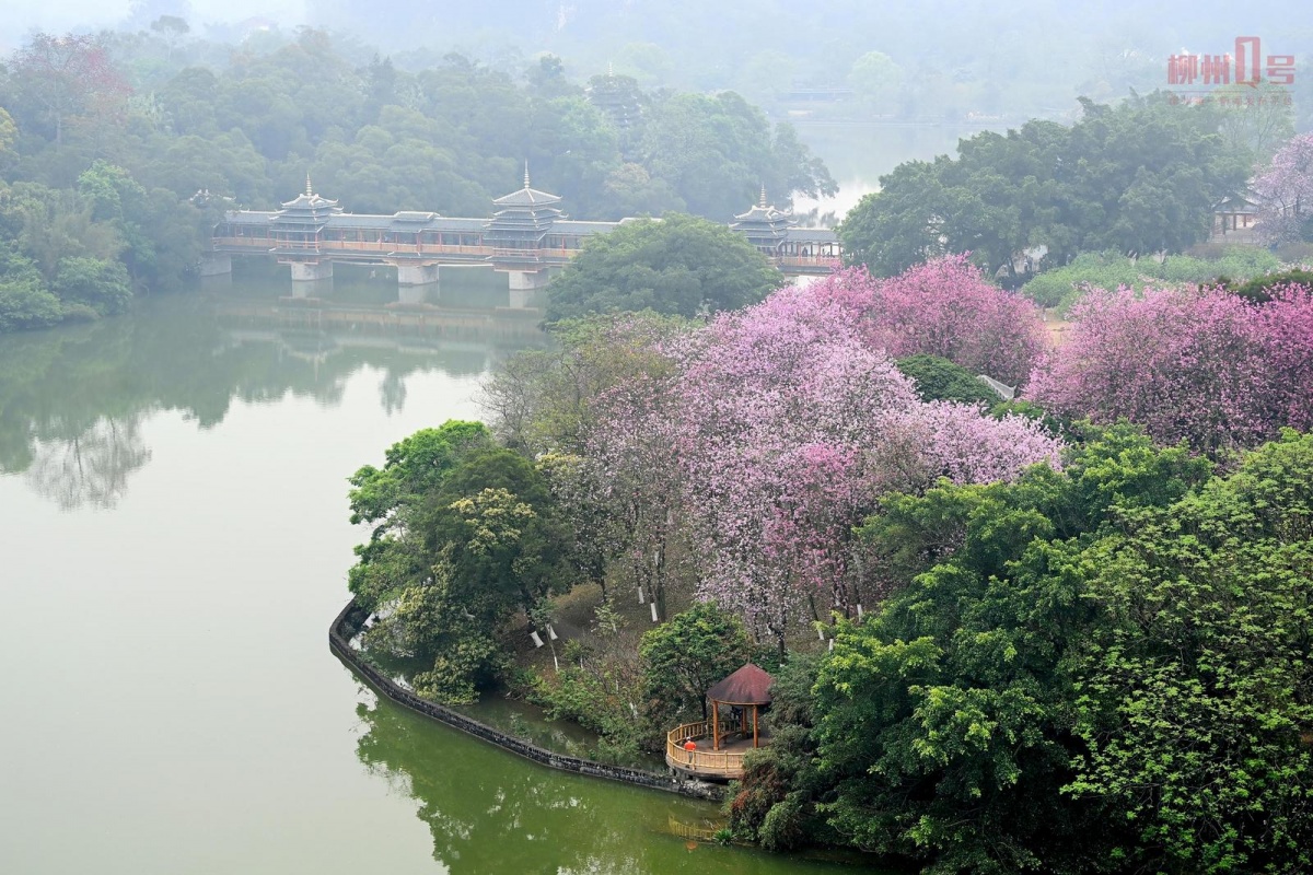 3月23日,春风拂过龙城,柳州市各公园内的洋紫荆迎来盛花期,将公园装点成浪漫的粉色“花园”。这些藏不住的美景,以绚烂的姿态,为公园增添独有的春天韵味,成为春日里最动人的风景。 龙潭公园里,洋紫荆的景致格外动人。从山上俯瞰,春花岛的洋紫荆沿着镜湖岸边铺展,宛如一条轻柔的粉红丝带,缠绕在青翠树木与澄澈湖水之间,与远处的风雨桥相映成趣。北大门草坪上,五株洋紫荆相拥而生,两色花朵交织绽放,形成“独木成林”的景观,吸引了不少市民游客在树下打卡拍照,定格这份春日里的自然惊喜。