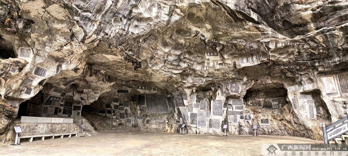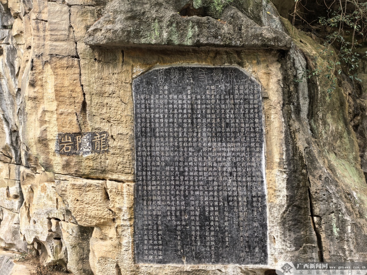 崖洞内保存的石刻。 “广西的喀斯特地貌,又为石刻提供了最理想的‘石纸’。”高梦然说,这些石刻大多镌刻在山洞、崖壁的隐蔽处,洞体可以遮挡风雨,避免阳光直射与暴雨冲刷,极大减少了风化的破坏。比如龙隐岩、七星岩这些岩洞,本身就像天然的庇护所,让崖壁上的文字得以跨越千年。此外,广西远离中原政权纷争核心区的地理位置,让这些石刻免遭战火波及得以安然留存。 广西的宋代石刻,最突出的特点便是以山水记游为主,辅以历史记录、铭功述德、诏书敕文、晓谕告示、营缮纪事等内容。南宋诗人范成大就曾盛赞“桂山之奇宜为天下第一”,他在桂林任职期间,在伏波山、龙隐岩、七星岩等处修建亭栏,还因为水月洞被改名,特意刻下《复水月洞铭》,希望“百世之后,尚无改也”,足见他对这片山水的珍视。 桂林龙隐岩北宋余藻的《龙隐岩题记》摩崖石刻,既描绘岩洞“石壁玉立”的景致,又暗含对山水清幽的赞叹。南宋才子陈谠在遍观桂林诸山的石刻后,将《游桂林诸岩洞诗》刻于普陀山弹子岩,概括了桂林奇山异洞的特征,称颂桂林石刻如《诗经》《史记》一般珍贵。而我们熟知的“桂林山水甲天下”这一千古名句,正是出自桂林独秀峰下,南宋官员王正功的《劝驾诗》石刻。这句刻在石上的赞叹,跨越了八百年,至今仍是桂林最响亮的名片。 拓石入纸 让千年石语走进当代 历经千年风雨,这些藏于崖壁的石刻虽有天然山石的遮蔽庇护,却终究难抵岁月的侵蚀,同时还面临着人为破坏、技艺传承断层的现实挑战。如何守护好这些刻在山水间的千年瑰宝,让古老的石语在当代焕发新生,成为当下广西文保领域亟待作答的时代课题。 走进桂海碑林博物馆,满墙的拓片,给了我们一个最直接的回答。