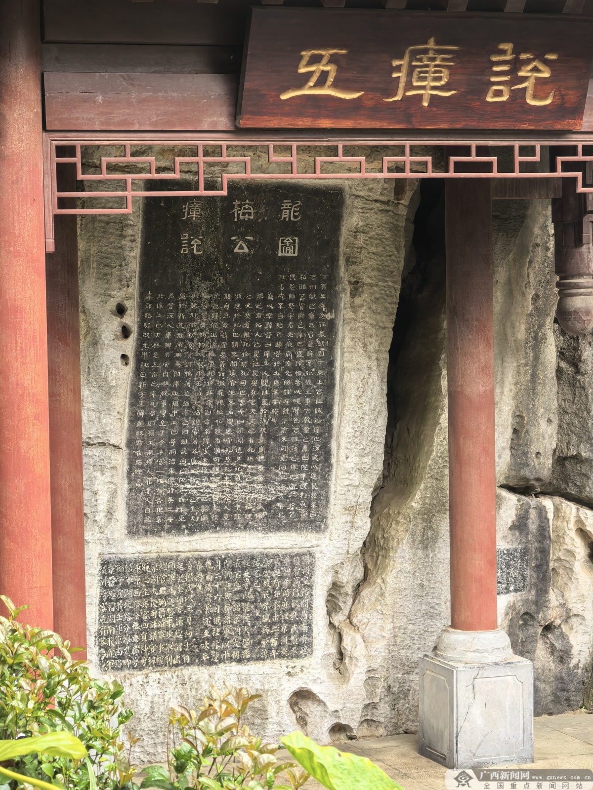 藏于龙隐岩内的“元祐党籍碑”。 如今,这两方珍贵的碑刻,一方存于桂林龙隐岩的崖壁上,另一方藏于融水苗族自治县民族博物馆。两方碑刻均完整收录了309人名单,只是在版式、字体上略有差异:龙隐岩版碑额为隶书“元祐党籍”四字,序在右、跋在左;真仙岩版碑额为楷书“元祐党籍碑”五字,序在上、跋在下。 如今这两方硕果仅存的“元祐党籍碑”,成为研究北宋党派斗争的珍贵实物,填补了史料的细节空白。而这份原来作为宣告罪名的“黑名单”,经过时间的大浪淘沙,反而成为彰显气节的“芳名录”,见证了正直之士“宁可枝头抱香死”的文人风骨。 有道是“看山如观画,游山如读史”,古人勒石记载史实,也将是非功过留与后人评说。