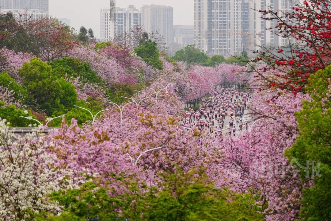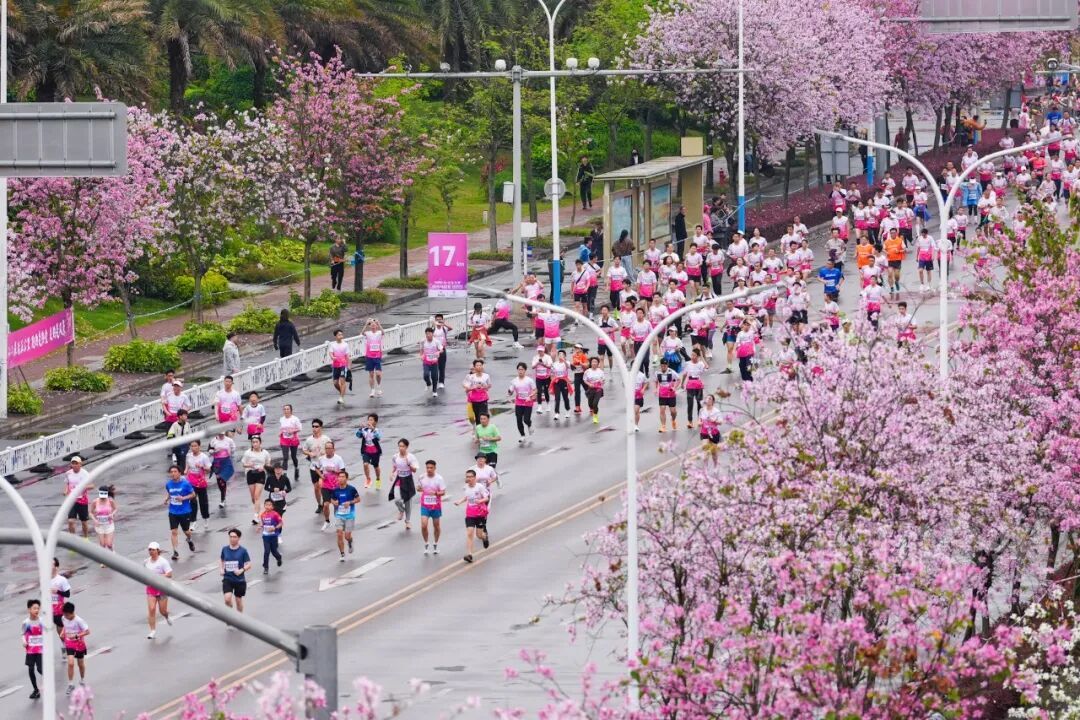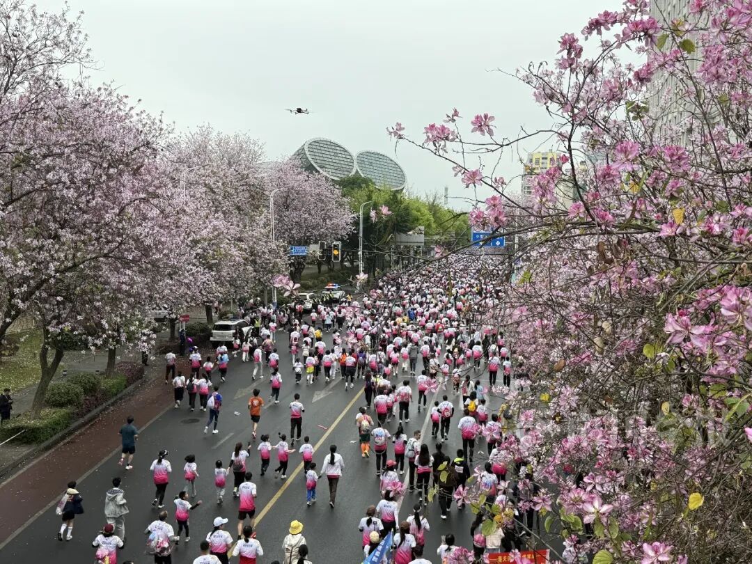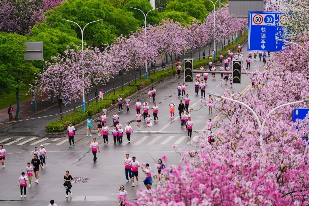 仪式感不减,人情味更浓 每一份参与都被郑重以待 依托柳州马拉松成熟的运营体系,本届全民跑在细节与体验上持续打磨。服装与奖牌与柳马采用统一主题设计,形成呼应,更具纪念意义。活动起终点特别设置了大型紫荆花瓣喷洒装置及特色打卡墙,为跑者的出发与抵达增添一份独特的仪式体验。 本次活动招募了55名官方陪跑员分布在跑道沿途定速领航,他们中既有经验丰富的跑者,也有热心参与的柳州市民,以主人翁精神为不同配速的跑者提供节奏引导与陪伴支持,帮助更多人轻松完赛、享受过程。 值得一提的是,本届全民跑还特别面向历届柳州马拉松未中签跑者,设置了500个感恩直通名额,让持续关注赛事的跑者感受到来自柳州的诚意与回应。 沿途精心设置的多处“音乐加油站”,用旋律为奔跑注入能量。少儿模特加油团的可爱亮相、打击乐协会的铿锵鼓点、手风琴社团的悠扬琴声、个性乐队的现场演奏……音乐、掌声与欢呼交织在一起,让跑者带着满满的能量持续向前。 赛道穿城而过 一路春色一路花 本次全民跑分欢乐跑和健康跑两条路线,赛道贯穿龙城美景,让你在奔跑中尽览柳江春色、紫荆风光。 柳州银行(起点)——东堤路(向北全幅)——沿江路(向北全幅)——环江滨水大道(向北全幅)——城中区体育公园(终点) 8公里健康跑沿江一路向北,穿梭在紫荆花海间,最终抵达城中区体育公园。江水相伴,城市相映,粉紫的紫荆与明黄的风铃点缀其间,跑者奔跑于花路之上,便成了这幅“百里柳江,百里画廊”中最动人的风景。 ![]() ![]() ![]() ![]()