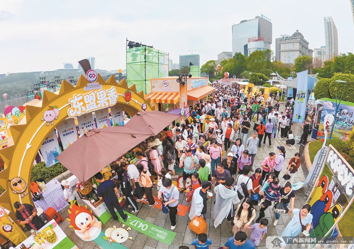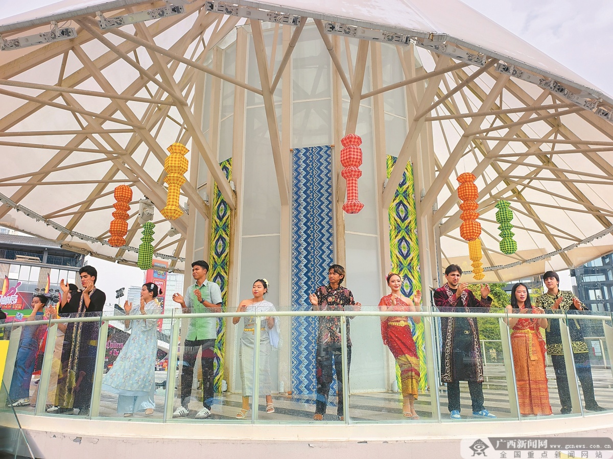 东盟水果展位前人头涌动。 开幕式上,丰富多彩的活动也吸引了众多外国友人参与、体验,沉浸式感受八桂大地浓郁的民族风情与开放包容的时代活力。