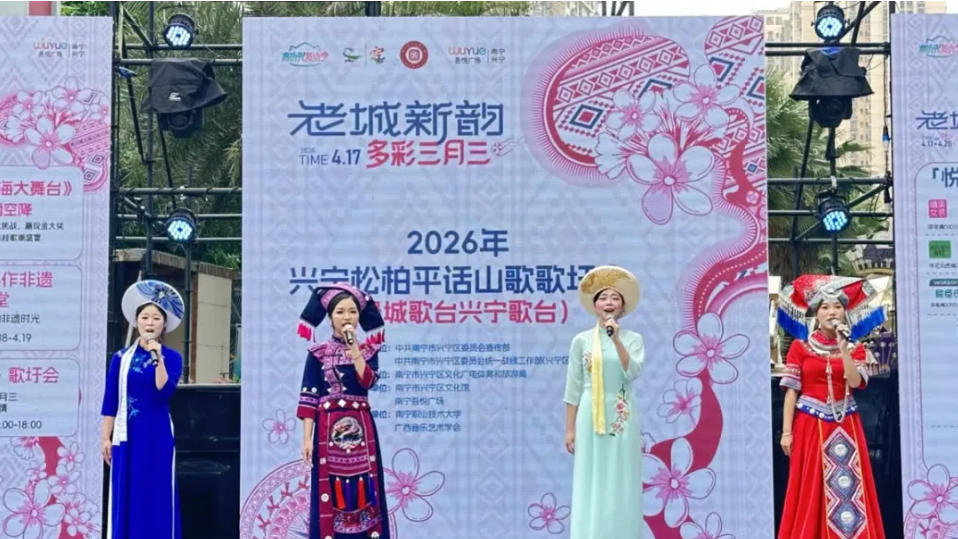 垂钓大赛现场。崇左市融媒体中心记者 李鸿熙 摄 本次大赛为期3天,4月18日至19日开展晋级赛,20日举行总决赛。赛事奖金丰厚,除百万冠军奖金外,亚军、季军、殿军将分获10万元、5万元、1万元奖金。赛事还特设巾帼奖、银发奖、幸运奖等,吸引了1320名钓友参赛,含越南等外籍选手及留学生近百人。 白天,麦那湖垂钓中心人声鼎沸,来自全国各地的钓手齐聚一堂,挥竿抛线、从容博弈,享受垂钓乐趣的同时,角逐百万大奖。赛事融入“三月三”元素,现场布置、美食展销、特色展览尽显民族风情。夜幕降临,太平古城华灯初上,“渔韵边关·非遗映城”系列活动拉开帷幕,各类民俗活动轮番上演,让游客感受到民族文化的独特魅力。 黑龙江游客蒋宏燕称赞:“第一次来崇左过‘三月三’,节日氛围浓、表演有特色、美食实惠,体验很好!” 南宁兴宁区 4月17日晚,“老城新韵·科技三月三”——2026年南宁市兴宁区松柏平话山歌歌圩会AI歌台在路桥融创茂启幕,传统山歌与人工智能创新融合,为市民带来别样民俗体验。