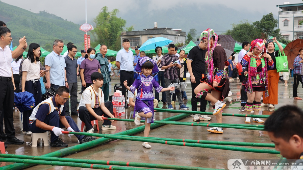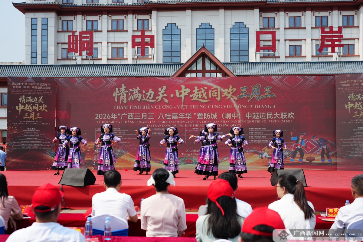 活动现场航拍图。 记者 苑长军 摄 4月18日,春光明媚,边关欢腾,防城港市防城区峒中镇峒中口岸广场上鼓乐喧天、笑语盈盈,“情满边关·中越同欢三月三”——2026年“广西三月三·八桂嘉年华”暨防城(峒中)中越边民大联欢活动在这里精彩上演。来自中国防城港市防城区和越南横模乡两国两地的边民与游客欢聚一堂,通过非遗展演、体育竞技、文化互动等丰富多彩的活动,共庆传统佳节、共叙邻里情谊,为“广西三月三·八桂嘉年华”增添了亮丽的色彩。 歌舞、器乐、非遗技艺等节目精彩上演。 黄翔 韦梅婷 蓝英 摄 当天,活动在热烈氛围中拉开序幕。现场设置的AI智能场景对话系统同步启动,向往来中越游客详细介绍防城区的景区景点、精品旅游线路,并提供个性化游玩推荐,科技与文化的巧妙融合,让广西三月三焕发出新的时代气息,也为游客带来了更便捷、更智能的文旅体验。现场展出的人工智能机器人不断向往来游客打招呼、握手,为活动增添了科技色彩。