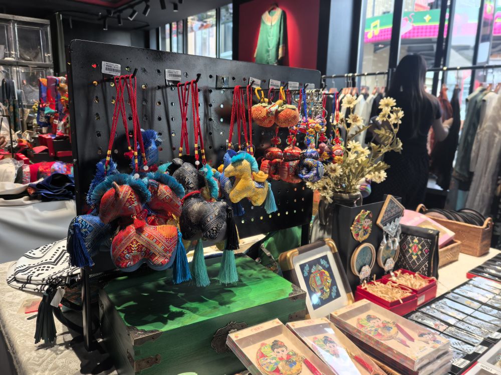 图为广西南宁一家文创店内陈列的壮锦产品。新华社记者 王楚然 摄 “广西三月三”活动期间,壮锦一跃成为文旅消费的亮眼主角。在南宁民歌湖,不少游客身着壮锦服饰拍照打卡,将岭南风光与锦绣纹样定格成美好瞬间;广西壮族自治区博物馆文创商店内,缀有八角纹、蝴蝶纹的壮锦“娃衣”备受青睐,小巧精致的玩偶身着传统纹样服饰,成为年轻人追捧的潮流单品。 从亲手体验织锦技艺的沉浸式文旅消费,到选购壮锦文创作为伴手礼,壮锦早已不再是单纯的传统工艺品,更化作一场可触摸的文化探秘,一份寄寓乡愁的情感牵挂。 歌圩声远未歇,锦绣岁岁常新。一缕彩线牵起古今岁月,传统纹样邂逅时代新潮,壮锦从陈列于时光中的技艺,演变为流淌在三月三的欢歌里、行走在街巷烟火中的活态文化,在春风里绘就着生生不息的锦绣新景。 |