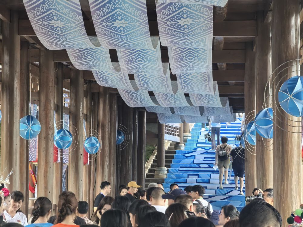 春风又度八桂地,岁岁共赴三月三。 歌圩声起,织锦流光,一年一度的“广西三月三・八桂嘉年华”活动如约启幕。南宁民歌湖主会场内,五湖四海的游客纷至沓来,沉浸式感受着热情与灵动。 在这场民俗文化盛会上,山歌嘹亮、丝竹悦耳。当中的亮眼元素少不了承载着千年文脉的壮锦,无论是风雨桥上飞扬的飘带,还是青年身着的民族服饰,壮锦元素无处不在。