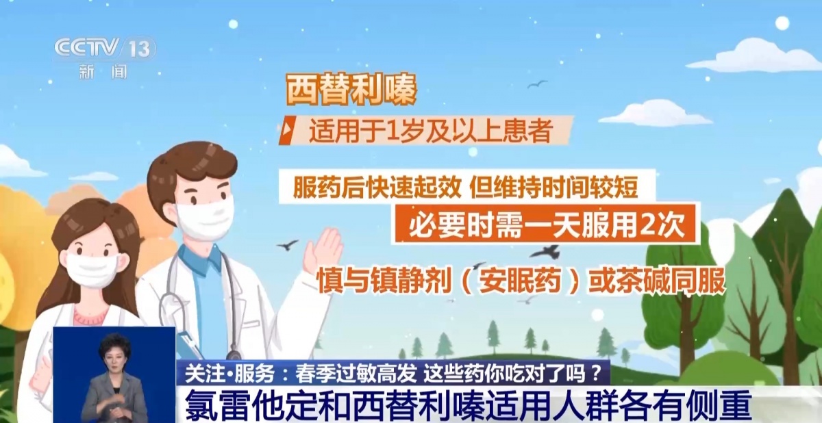 春天来了,百花盛开,但一些人的眼睛鼻子却开始过敏了。最近,“氯雷他定”“春季过敏”等相关话题登上热搜。除了氯雷他定,不少网友指出“西替利嗪”也可以抗过敏,这引发了一些网友疑惑,氯雷他定和西替利嗪两种药品怎么选?如何用?网传“服用氯雷他定会犯困,更换西替利嗪就一定能好转”的说法是真的吗?来听医生怎么说↓ 氯雷他定和西替利嗪适用人群各有侧重 医务人员介绍,氯雷他定适合2岁及以上患者,起效较西替利嗪慢,维持时间较长,一天一次即可。