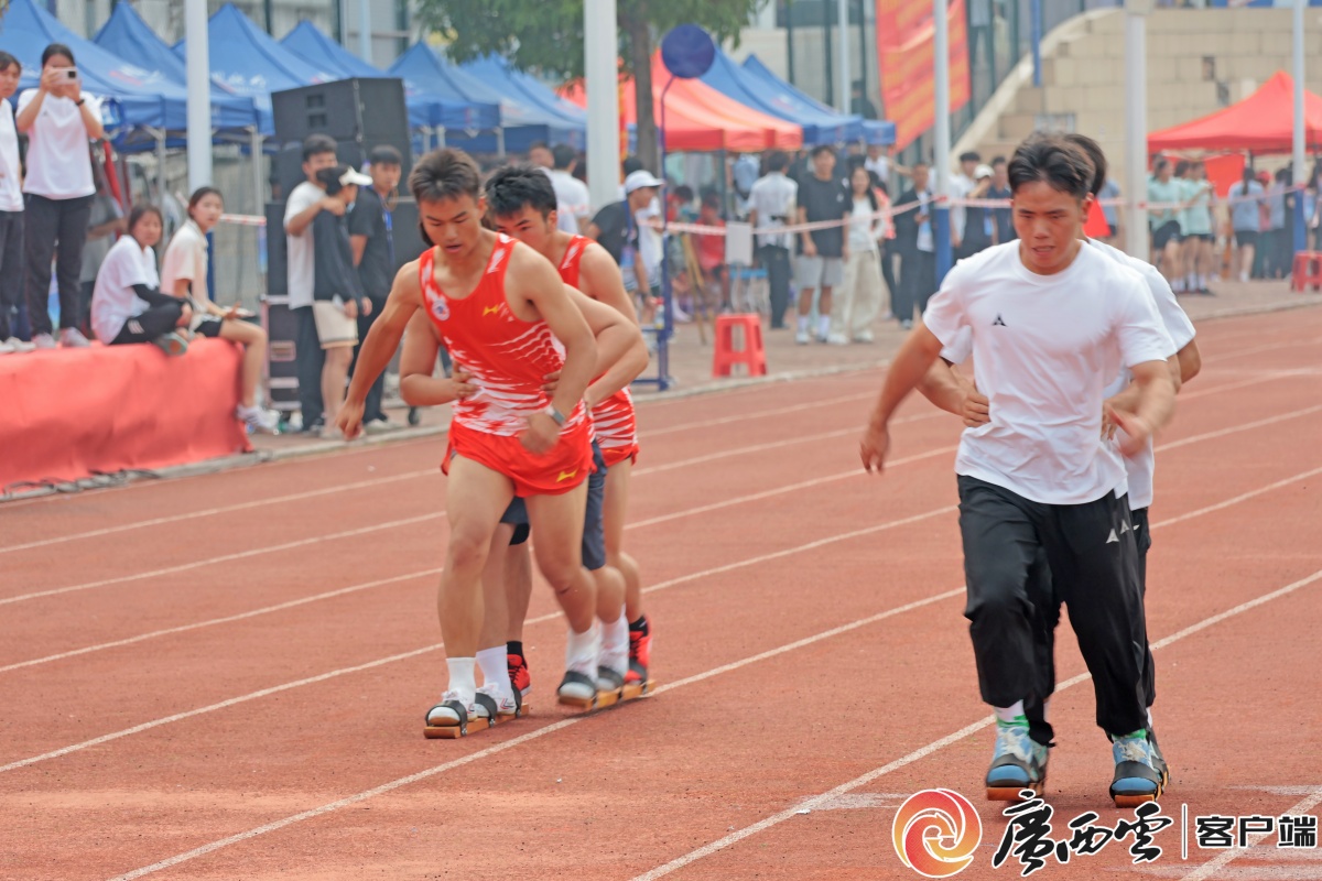 各高校健儿在板鞋竞赛中激烈竞争。农丽琳 摄 各校健儿们在赛场上的精彩表现不仅赢得了观众们的阵阵掌声,也为节日增添了更加欢乐的喜庆氛围。